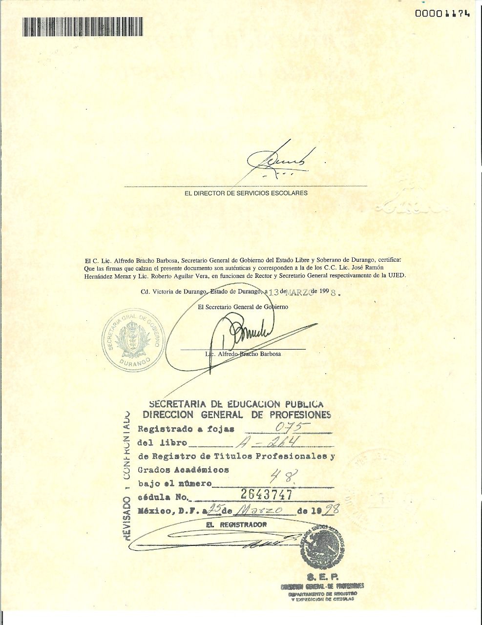 No. de cédula: 2643747