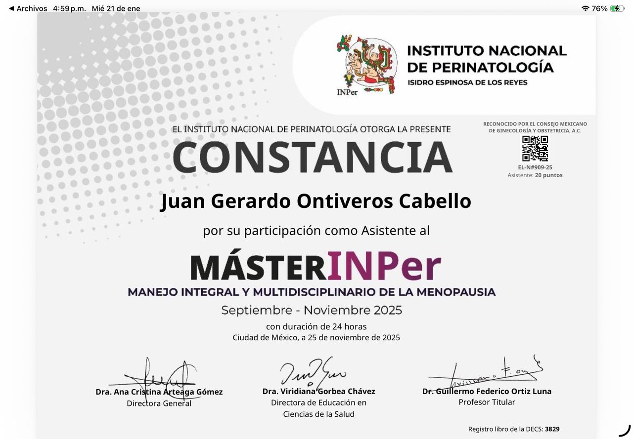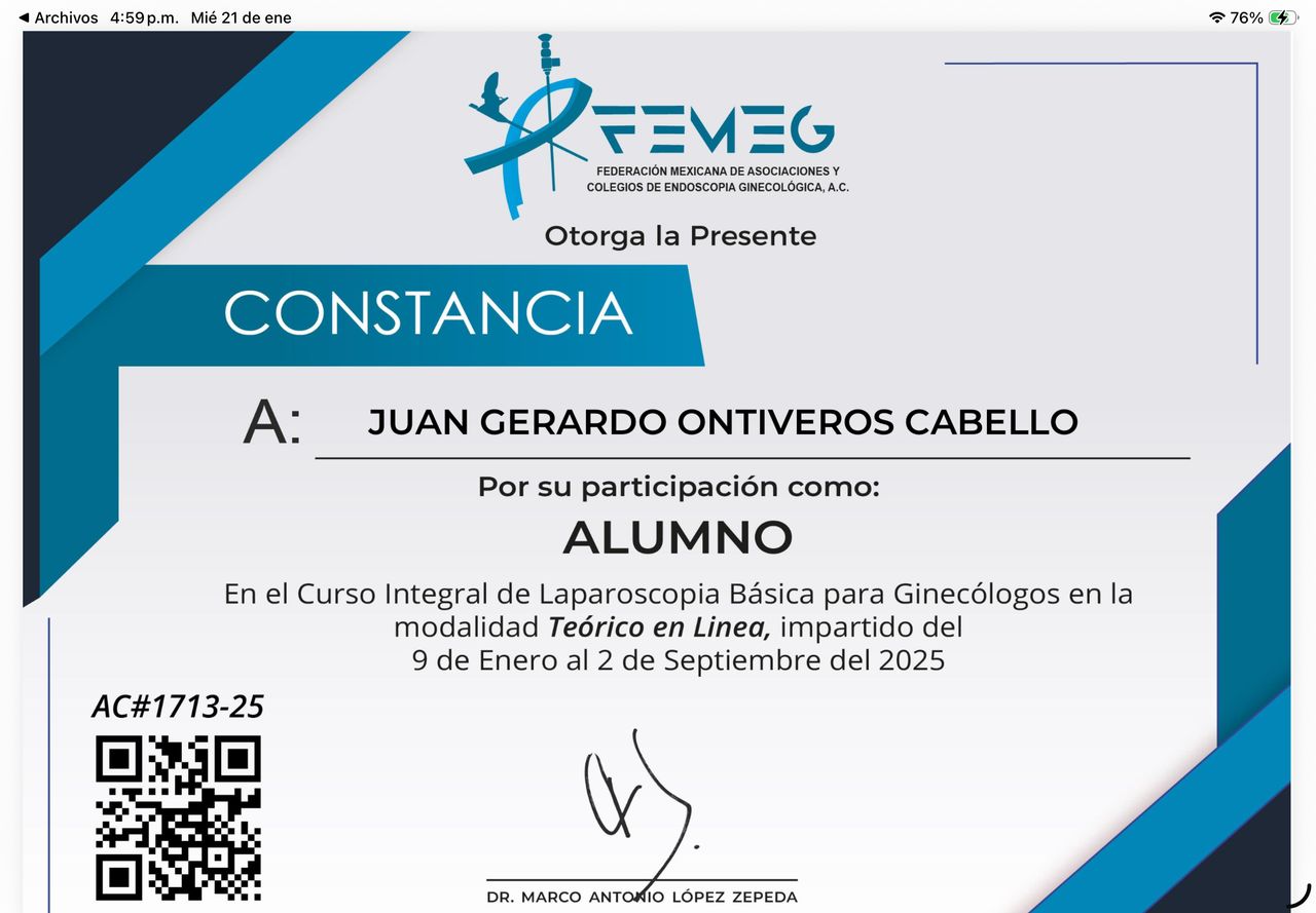 Soy médico cirujano egresado de la Universidad del Valle de México (UVM Campus Saltillo). Realicé la especialidad en Ginecología y Obstetricia en el Hospital General de Saltillo, con aval universitario por la Universidad Nacional Autónoma de México (UNAM).
