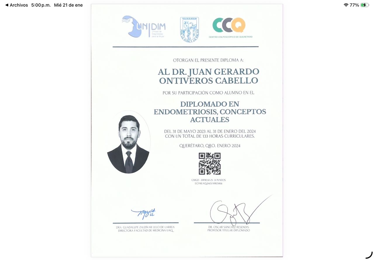 Diplomado en Endometriosis, avalado por la Universidad de Querétaro.