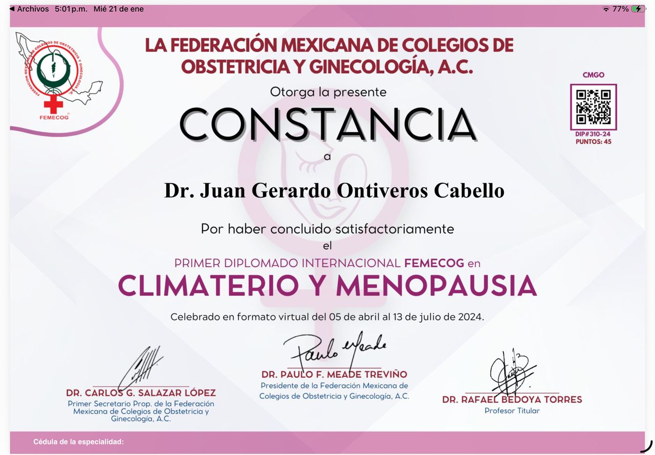 Estoy certificado por el Consejo Mexicano de Ginecología y Obstetricia (CMGO).