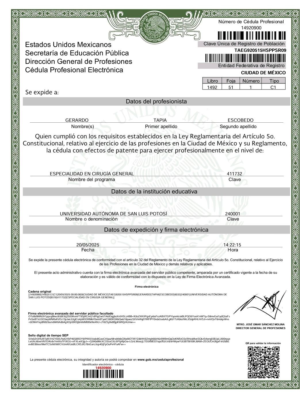 Soy médico cirujano con especialidad en cirugía general, con entrenamiento avanzado en laparoscopia, cirugía de hernias, procedimientos de vía biliar, cirugía de urgencias y trauma abdominal. Mi práctica se enfoca en brindar atención quirúrgica segura, basada en evidencia y con una recuperación rápida y eficaz para mis pacientes.