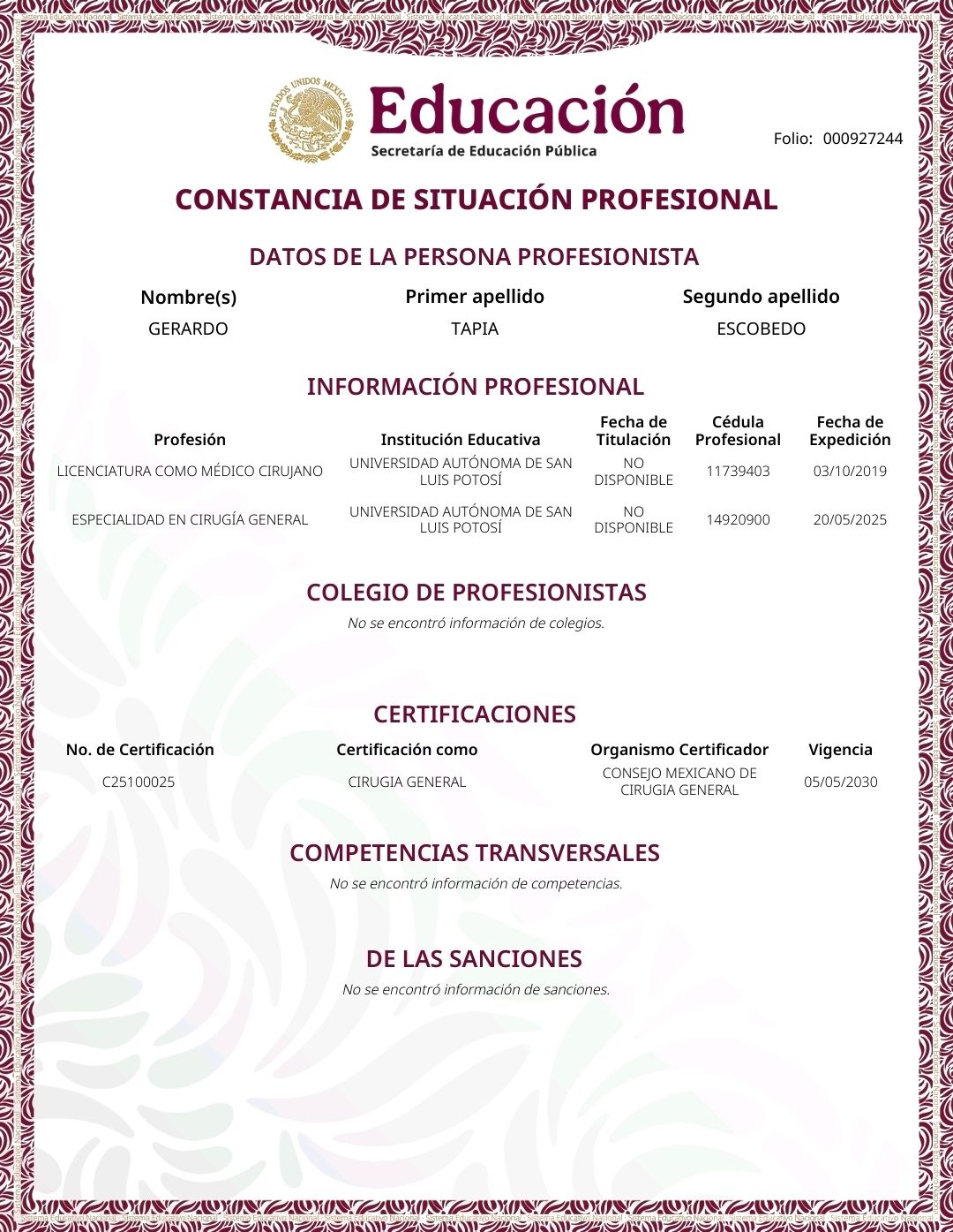 La atención con el doctor Gérardo Tapia es muy buena , lo recomiendo mucho, pues en lo personal su acompañamiento para con mi familiar a sido en todo momento , esta siempre al cuidado de su tratamiento y recuperación, en este tiempo emos tenido muy buena atención , agradecemos mucho esa empatia que tiene para con sus pacientes ya que en nuestro caso a sido un proceso que a llevado algo de tiempo y a sido muy bueno el resultado , , gracias dr ,por su atención. 100% recomendado.