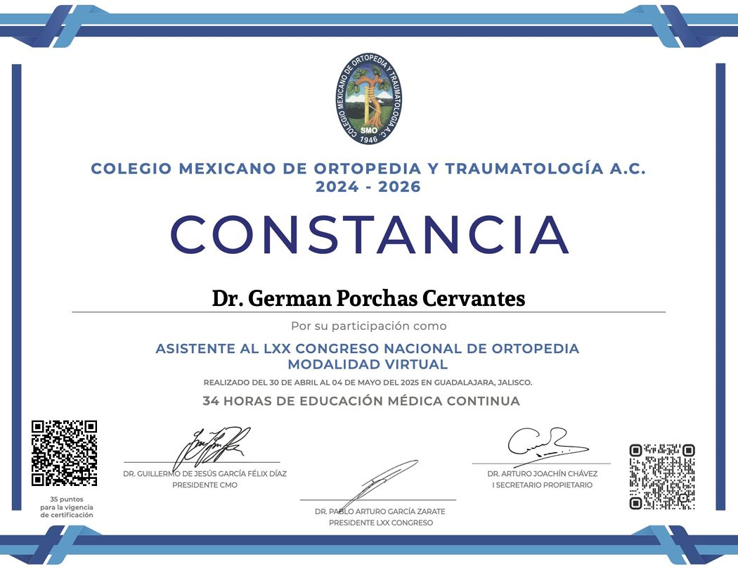 Hola Soy el Dr. German Porchas y brindo atención enfocada al área de Traumatología y Ortopedia a pacientes niños, jóvenes y adultos.