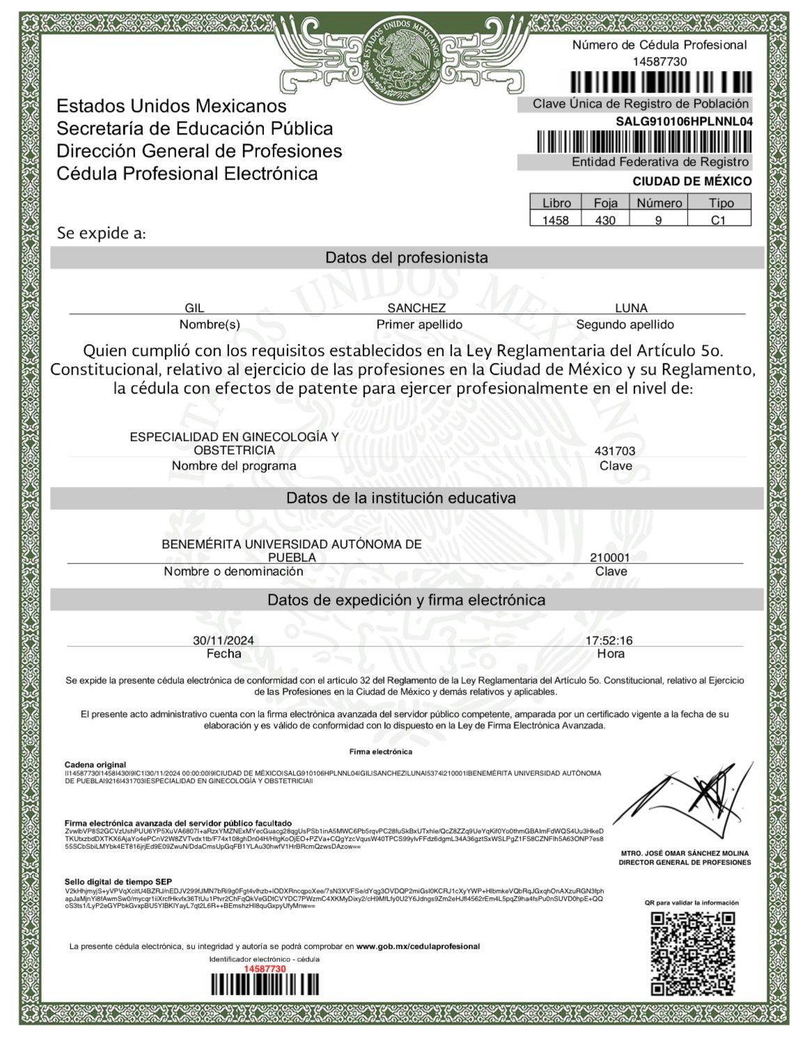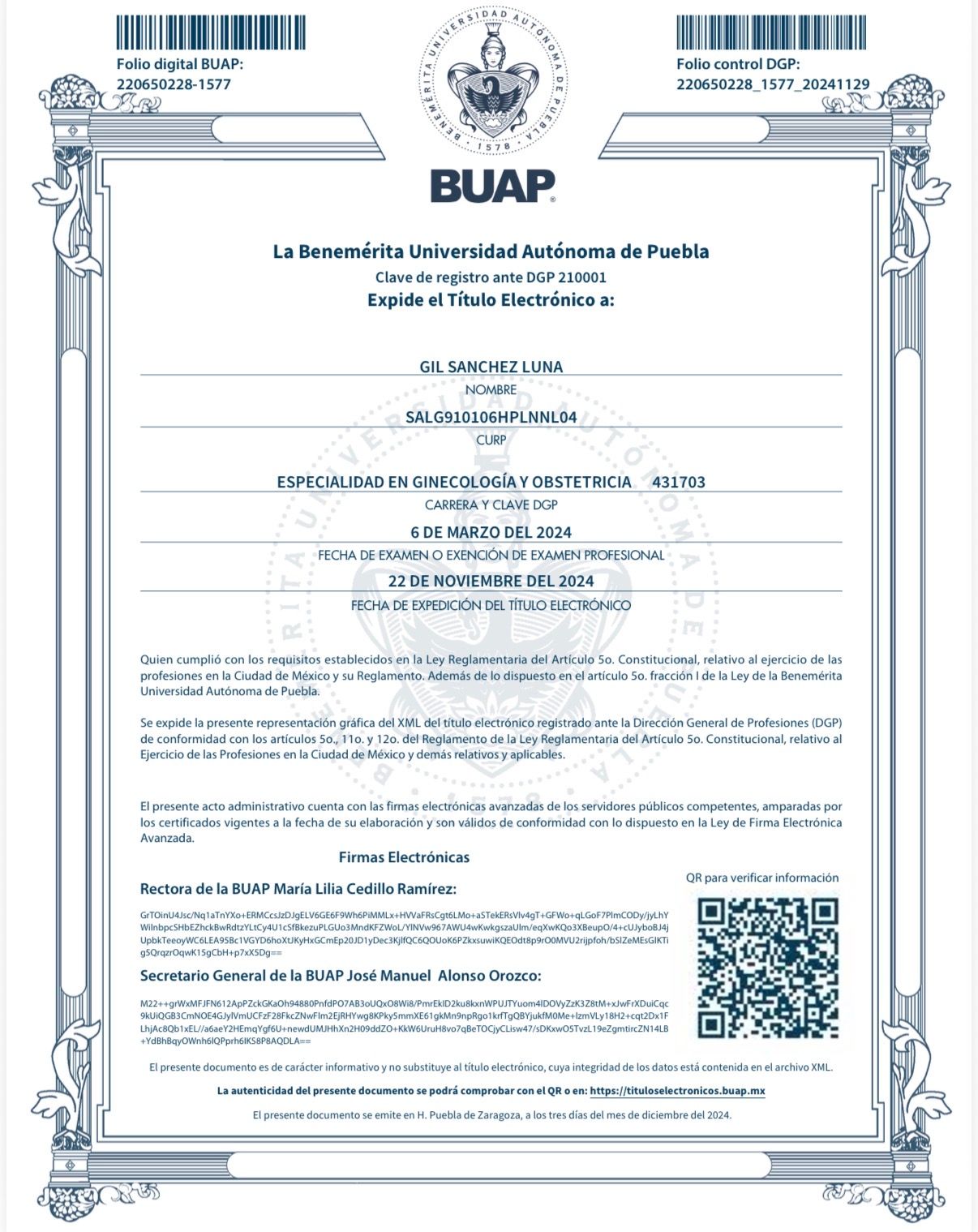 Creo firmemente en la importancia de una medicina actualizada, ética y de calidad, por lo que procuro ofrecer diagnósticos claros, tratamientos individualizados y una atención integral, siempre buscando el bienestar materno-fetal y la salud de la mujer.
