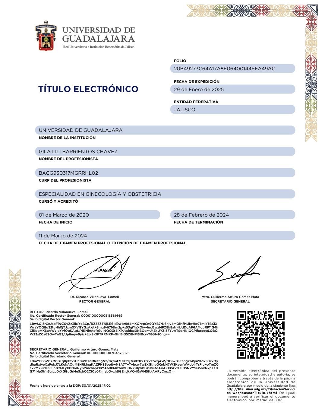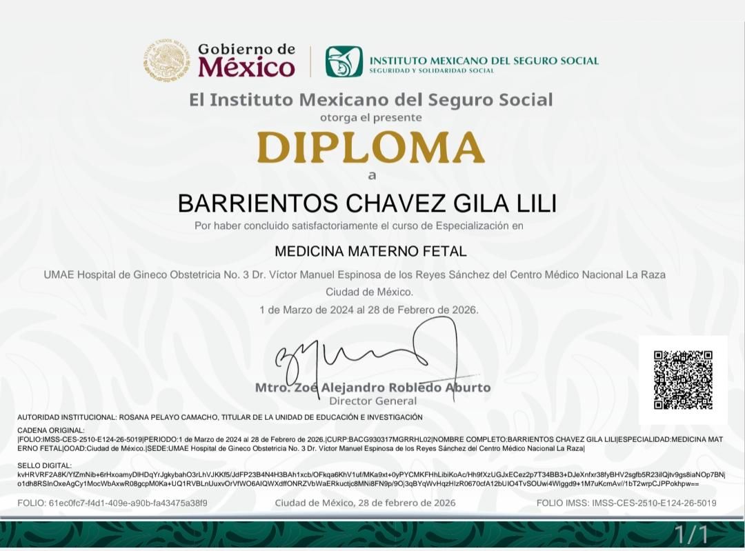 Soy médico especialista en Ginecología y Obstetricia, graduada del Centro Médico Nacional Occidente Guadalajara (IMSS) y avalada por la Universidad de Guadalajara. Realicé la subespecialidad en Medicina Materno Fetal en el Centro Médico Nacional La Raza por la UNAM, el primer hospital público del IMSS donde se realizan cirugías fetales desde 2019.