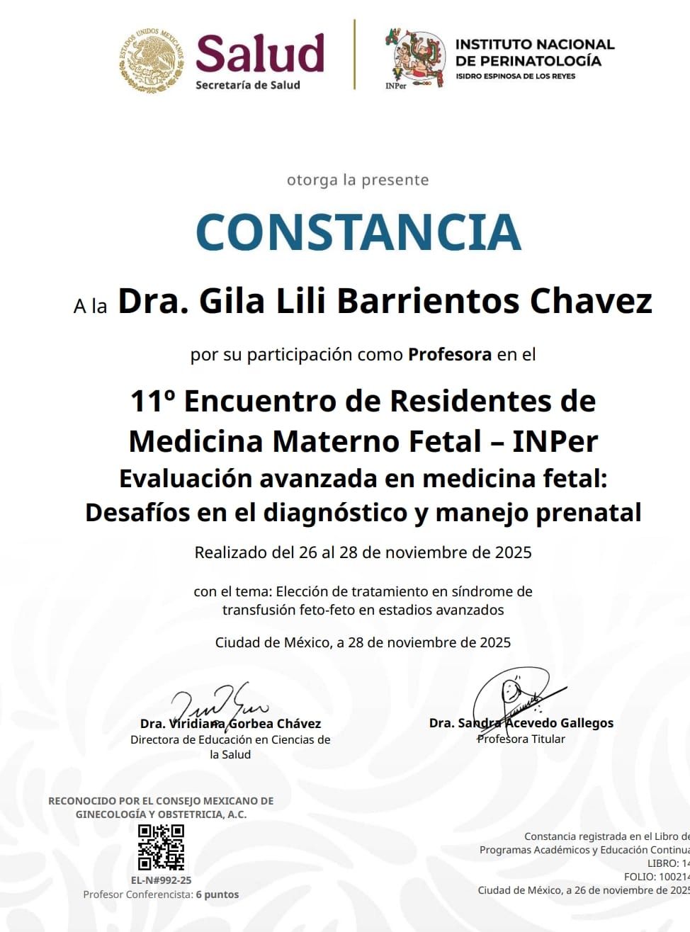 Durante mi formación, tuve la oportunidad de aprender de los mejores especialistas, enfocándome en el control de embarazos de alto riesgo, diabetes gestacional, hipertensión durante el embarazo, pérdida gestacional recurrente, incompetencia cervical, así como en el seguimiento y detección oportuna de complicaciones en embarazos gemelares y múltiples (como trillizos).