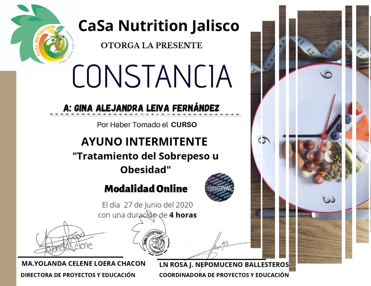 Curso actualmente la Maestría en Nutrición Clínica,