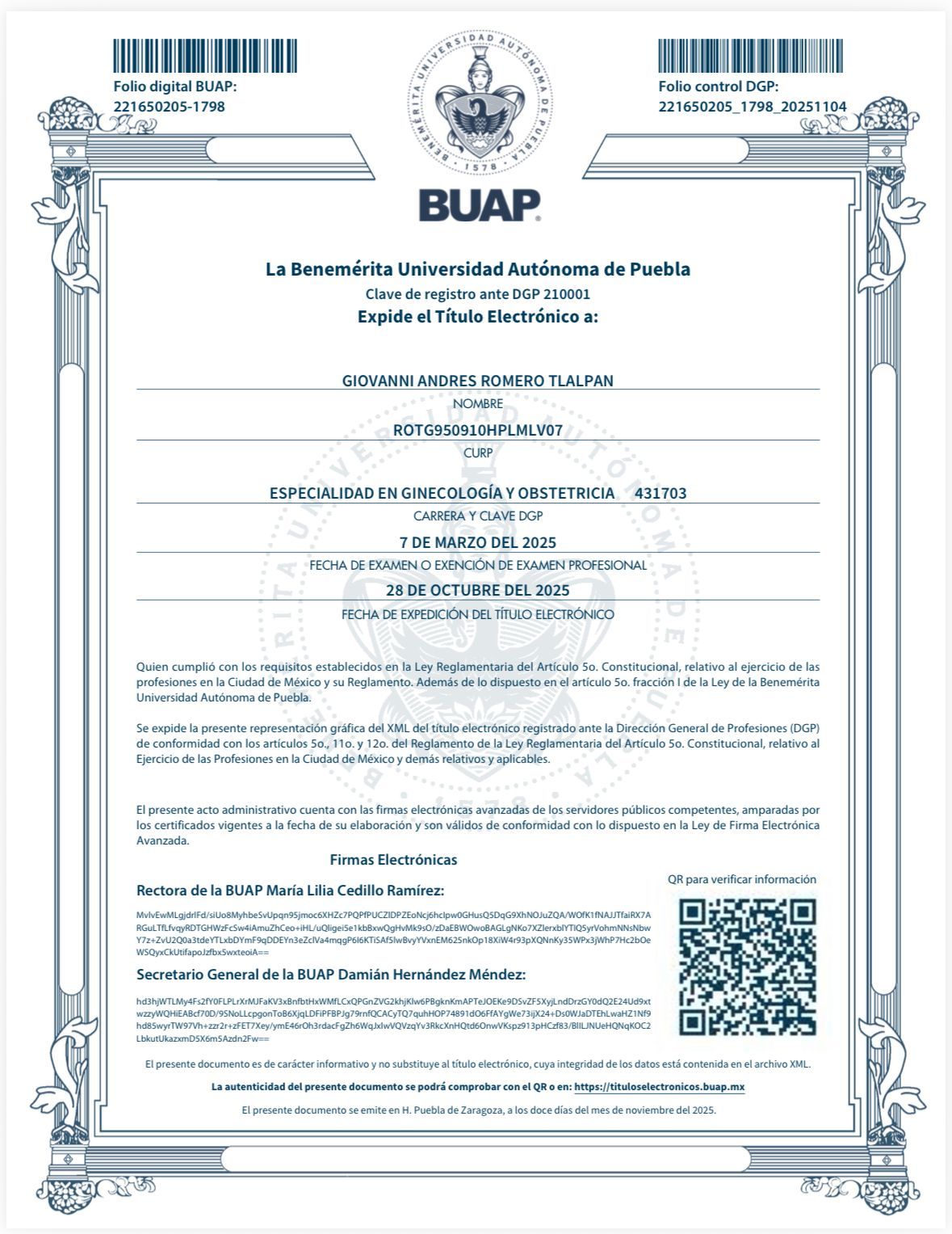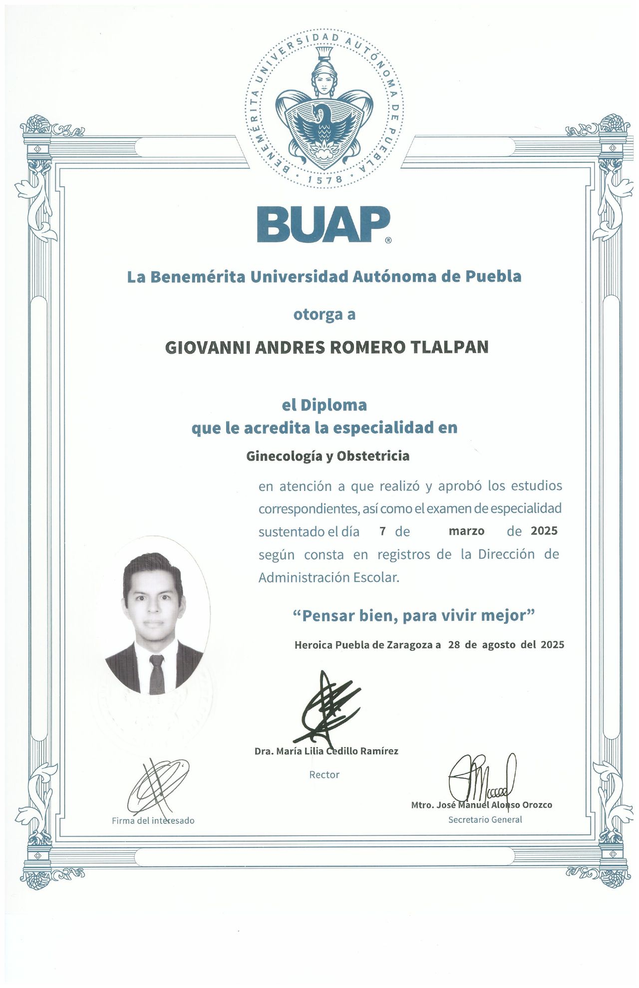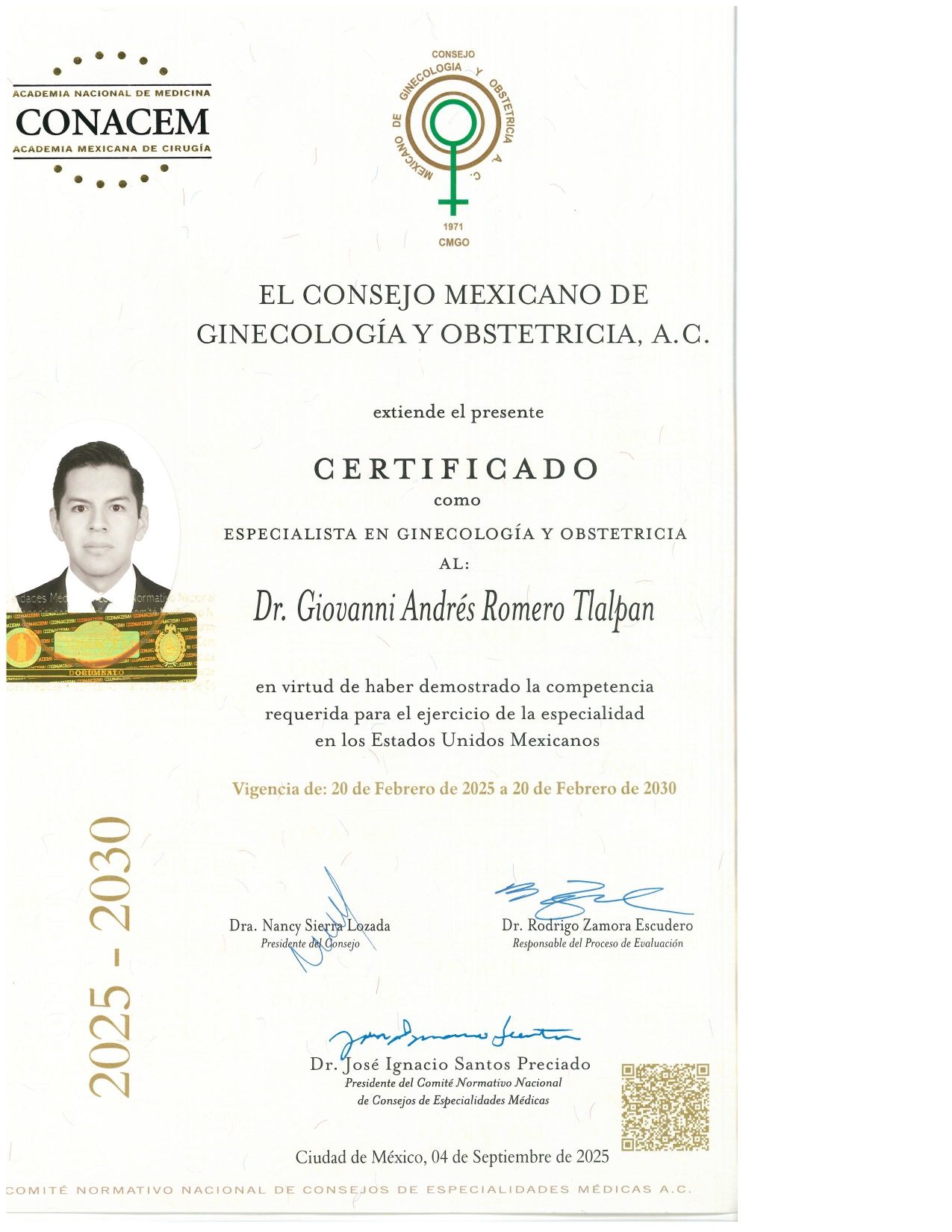Certificado por el Consejo Mexicano de Ginecología y Obstetricia