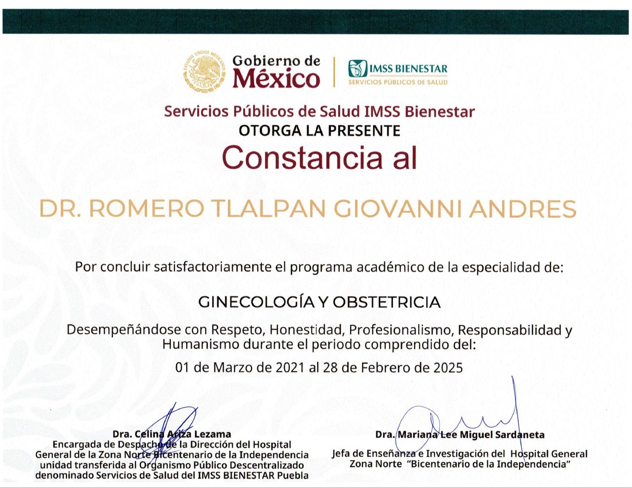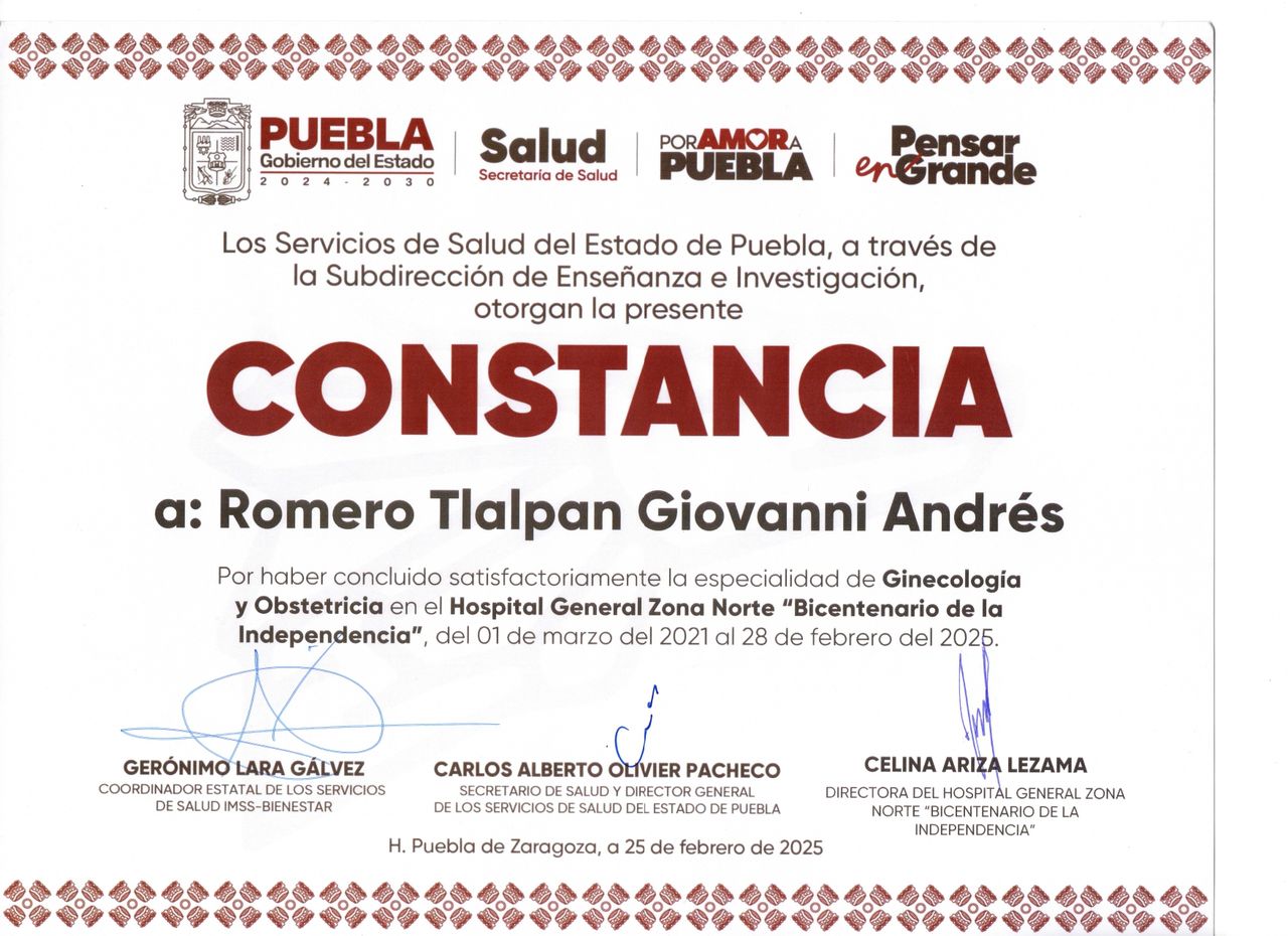 Especialista formado en el Hospital General de Zona Norte (BUAP)