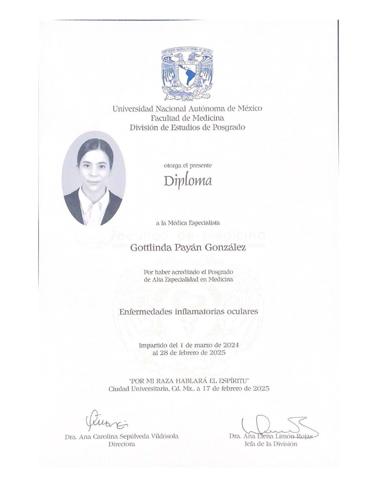• Dra. Gottlinda Payán González • Visitas sucesivas Oftalmología •