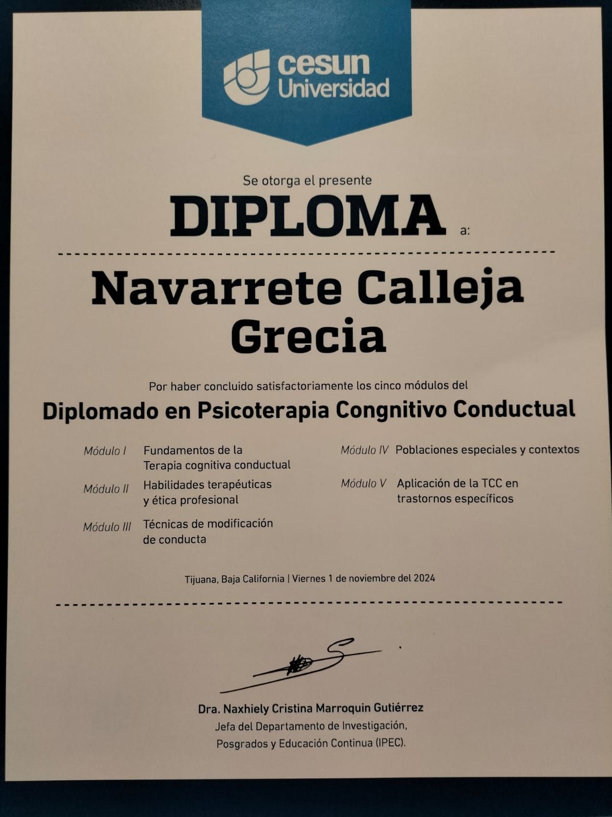 Llegue con la Dra. por recomendación de su profesionalismo y ahora no me queda duda que tomé la mejor decisión. Muy profesional,atenta y puntual. Mi hijo se sintió en confianza y va con gusto a cada sesión. Puedo decir que en poco tiempo eh notado grandes avances gracias a las terapias de la Dra.Grecia