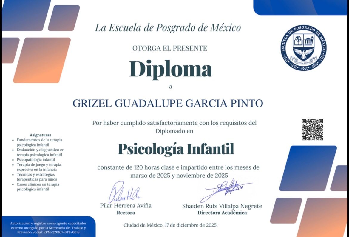 Mi hija tuvo problemas emocionales y tenía bajas calificaciones pero gracias a la psicóloga Grizel me ha apoyado mucho en cuando al rendimiento de mi hija y a mejorar su estado emocional.