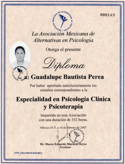 Mi experiencia con la psicóloga Guadalupe ha sido muy grata y reconfortante, pues gracias a ella y a otro colega, me he sentido mucho mejor conmigo misma y he podido seguir adelante con mi vida perdiendo angustia, incertidumbre, tristeza y muchas otras emociones que no me permitían avanzar...