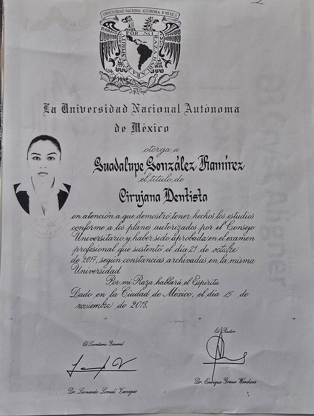 Recomendaría mucho a la Dra. Guadalupe ya que desde el inicio existe un gran respeto por el paciente, su tiempo y compromiso con su salud. Es muy profesional, explica detalladamente desde el diagnóstico hasta la solución y ofrece alternativas al paciente, de existir; ella busca la mejor calidad en sus materiales, procedimientos y atención.
