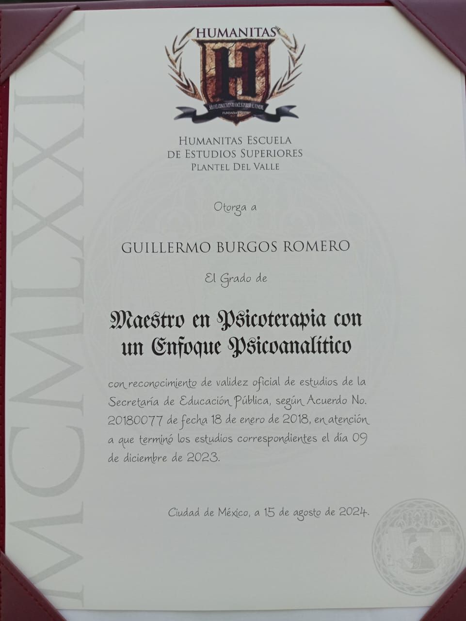 Soy psicólogo clínico con Maestría en Psicoterapia con Enfoque Psicoanalítico.