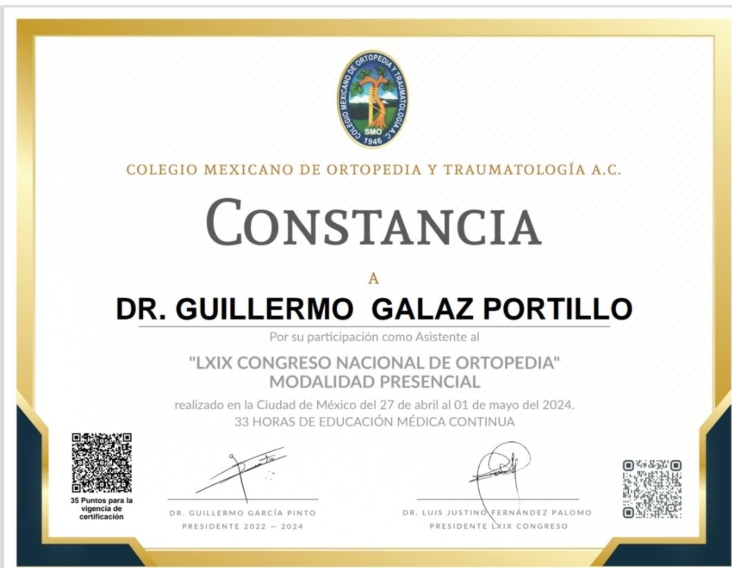 Soy medico especialista en Ortopedia y Traumatología, con 15 años de experiencia ayudando a personas a caminar mejor, moverse sin molestias y volver a disfrutar de su día a día sin limitaciones. Estoy certificado por el Consejo Mexicano de Ortopedia y Traumatología. Atiendo lesiones articulares, musculares y óseas, desde dolores crónicos como artrosis o la ciática, hasta lesiones deportivas, fracturas y problemas de columna. mi enfoque es integral: escucho tu historia , explico tu diagnostico con claridad y te propongo un tratamiento realista y personalizado. Recuperar tu movilidad y dejar de vivir con dolor es posible. Agenda una cita y empecemos tu recuperación juntos. Estoy aquí para ayudarte.