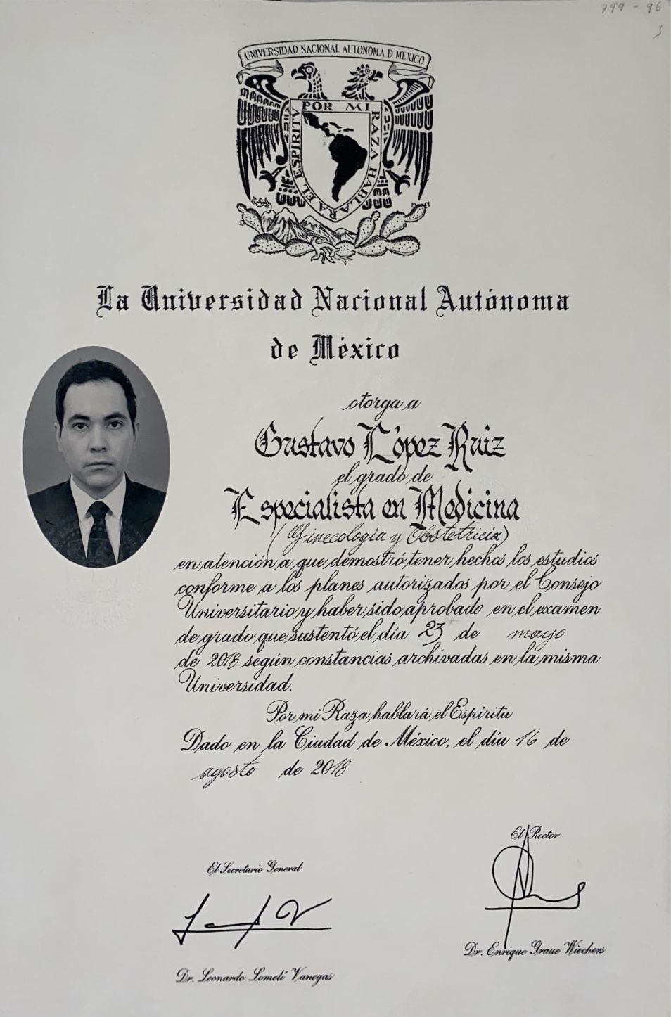 Especialista en Ginecología y Obstetricia por la Facultad de Medicina de la UNAM.