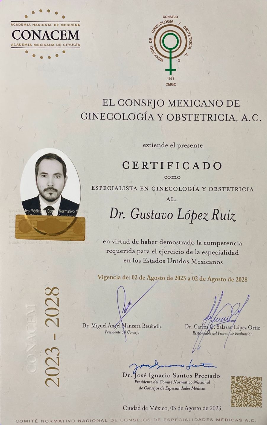 Certificado por el Consejo Mexicano de Ginecología y Obstetricia