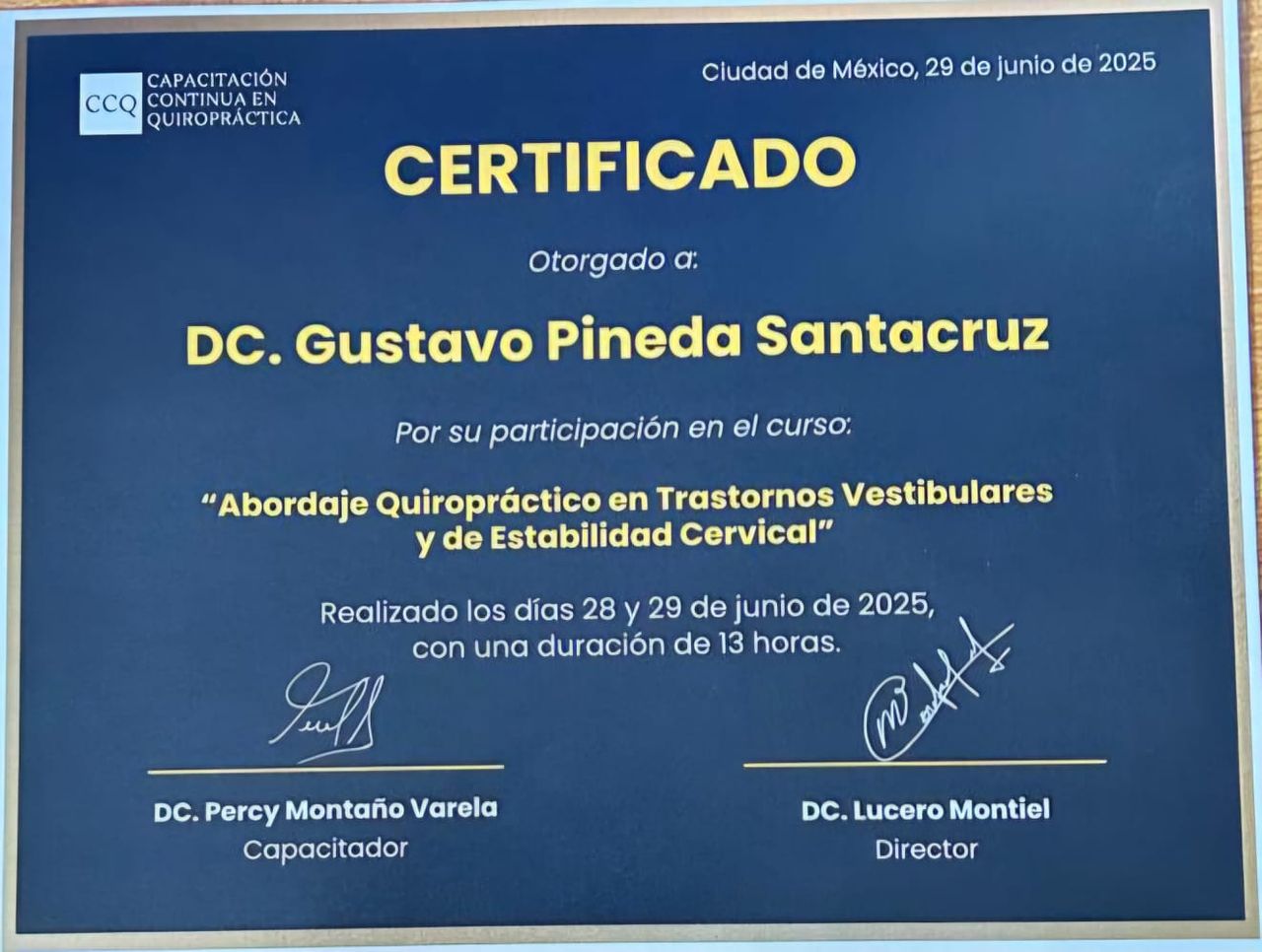 Soy egresado de la primera universidad de quiropráctica en México (UNEVE) en el año 2007, fui docente de la licenciatura en quiropráctica en la UNEVT por más de 10 años, en el 2019 obtuve una certificación internacional en quiropráctica deportiva por la FICS.