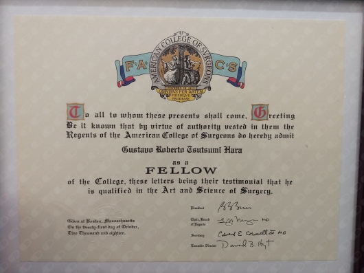 Certificado por el Consejo Mexicano de Cirugía General , Fellow del American College of Surgeons.