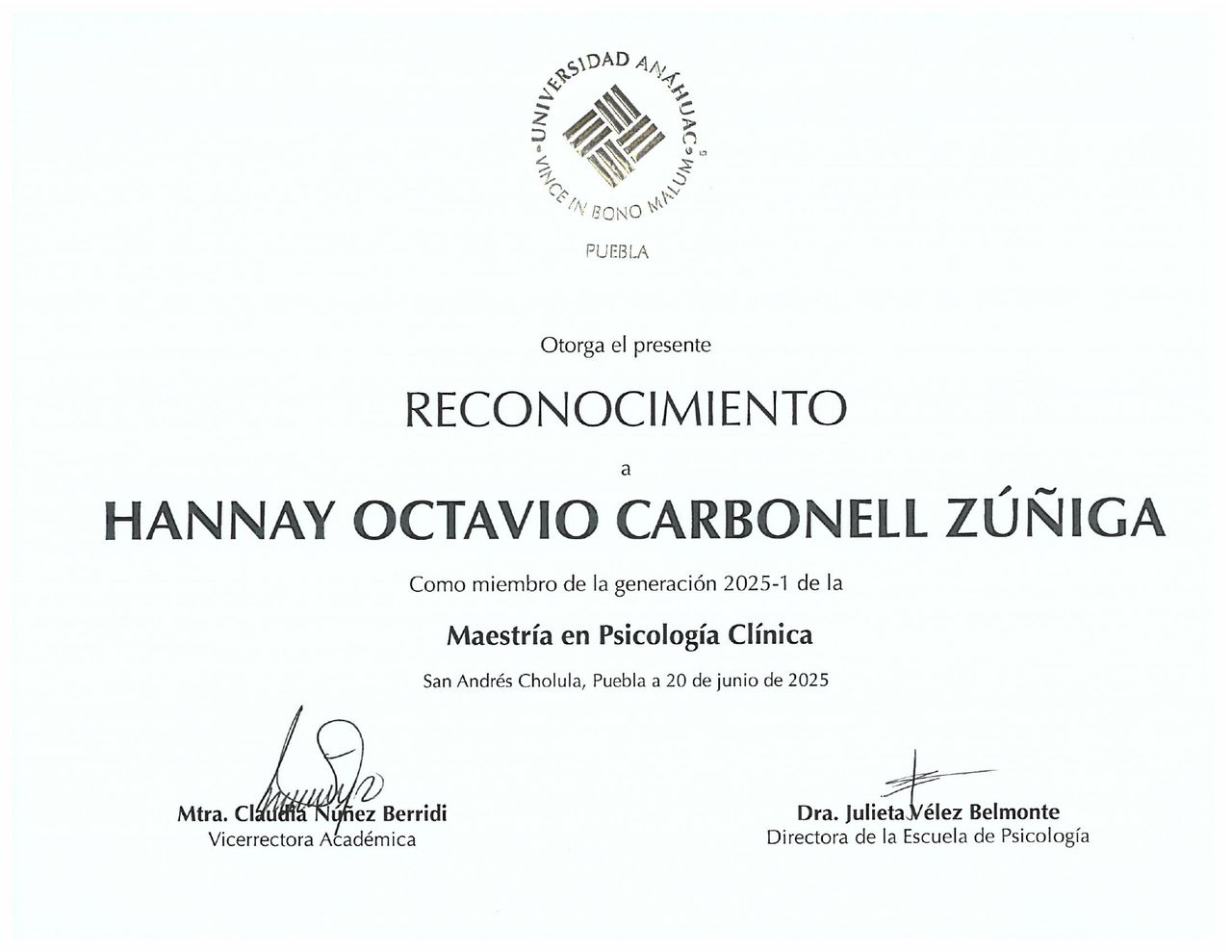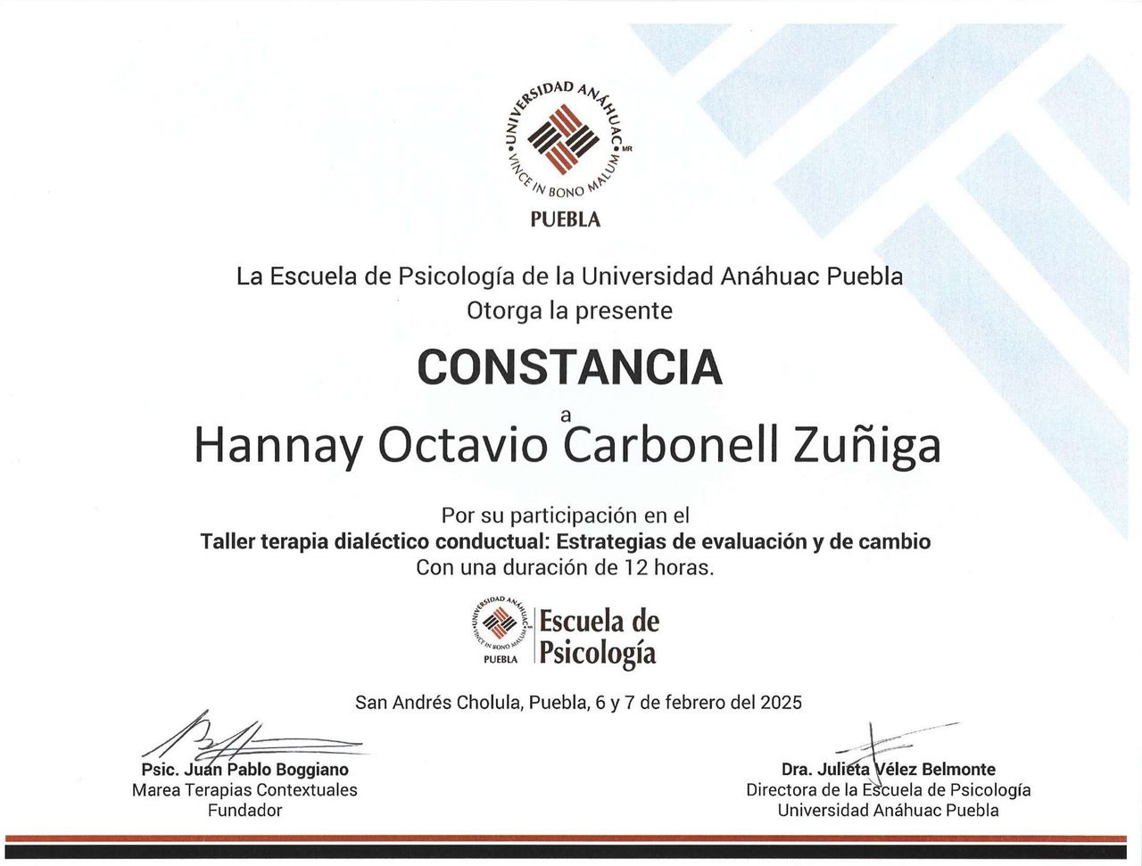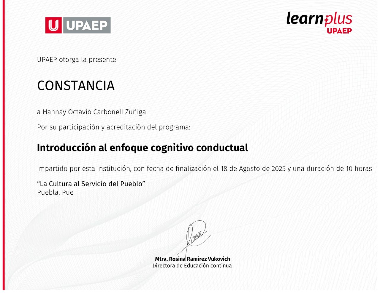 Hola, soy psicólogo egresado de la Benemérita Universidad Autónoma de Puebla con maestría en Psicología Clínica por parte de la Universidad Anáhuac y actualmente estoy cursando la maestría en Psicoterapia Cognitivo-Conductual en UPAEP. Además, cuento con varios diplomados, cursos y certificaciones en psicoterapia, en estrategias de intervención psicológica, en tanatología y en psicología del deporte.