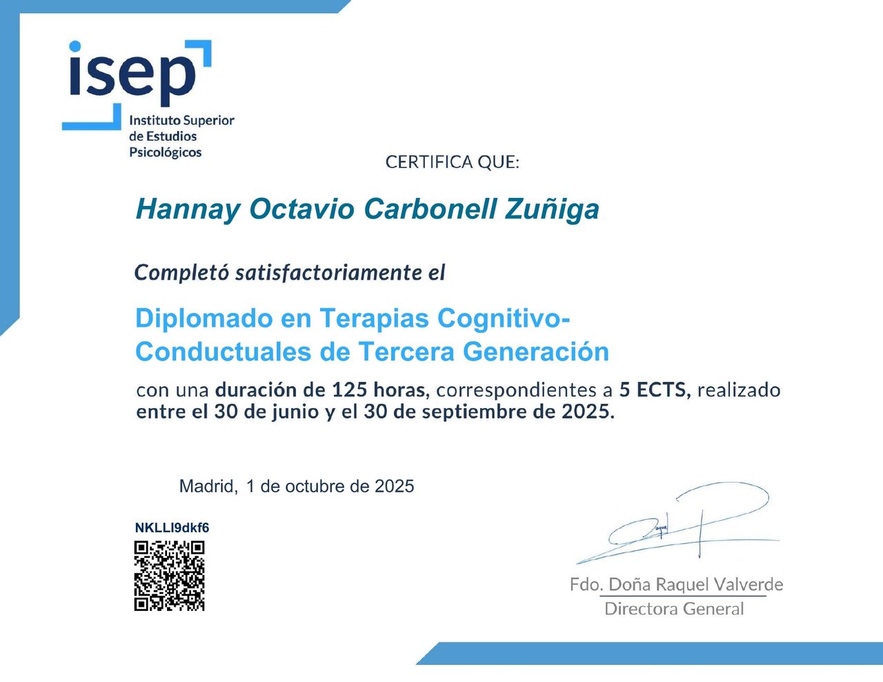 Mi formación y experiencia me hacen competente para ejercer como profesional dentro del campo de la salud mental.