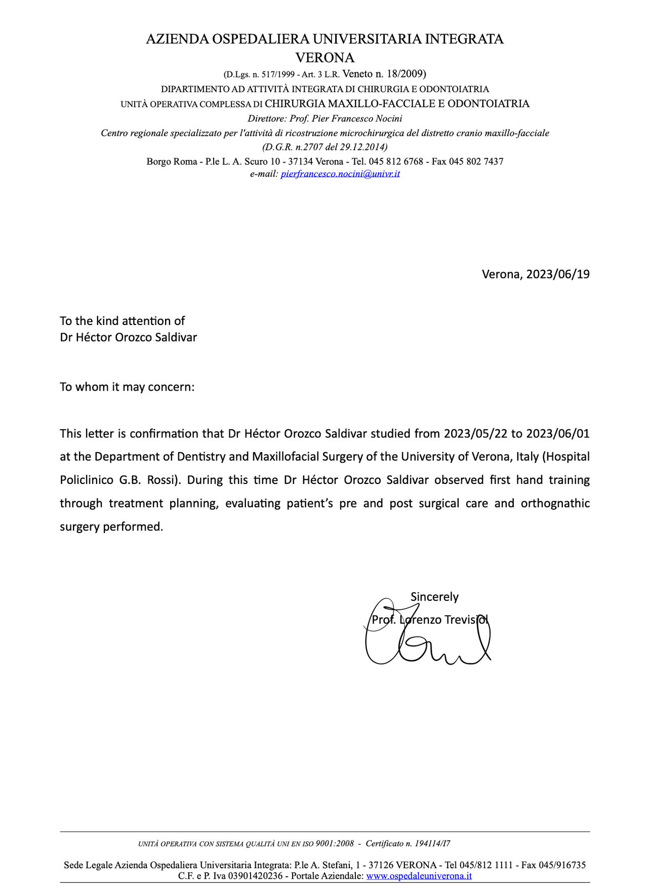 Training in Orthognathic Surgery / Department of Maxillofacial Surgery , University Of Verona , Italy ( Policlinic Hospital ) 2023