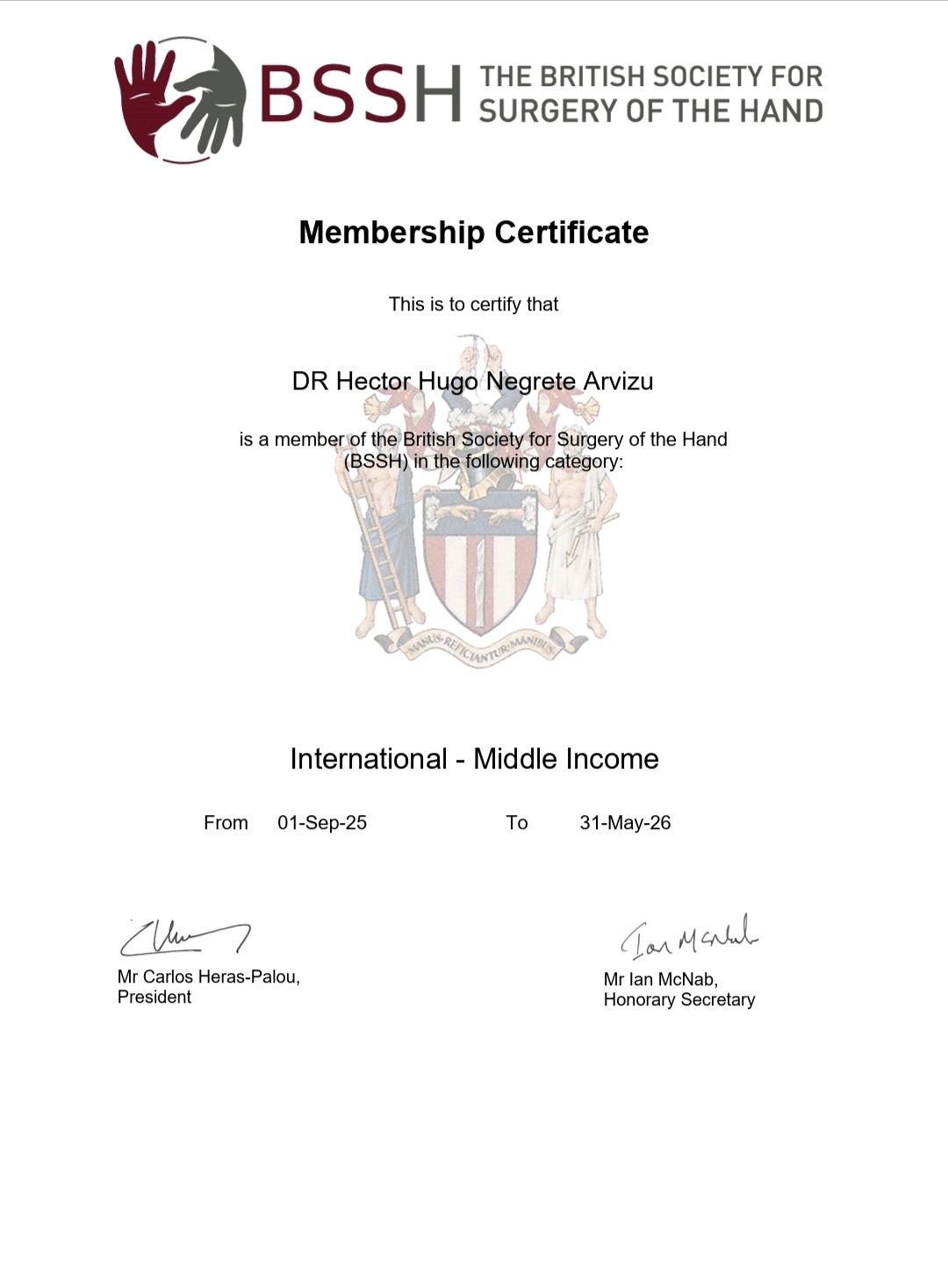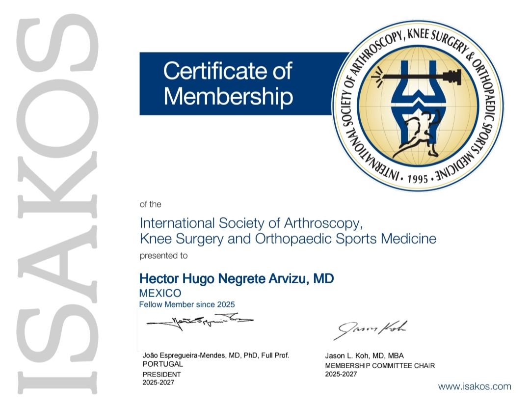 Médico Especialista en Ortopedia y Traumatología Avalado por la UNAM. Certificado por el Consejo Mexicano de Ortopedia y Traumatología. Miembro The British Society for Surgery of the Hand (BSSH), International Society of Arthroscopy, Knee Surgery and Orthopaedic Sports Medicine (ISAKOS) y Hospital Ángeles Health System.