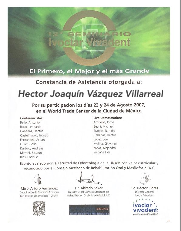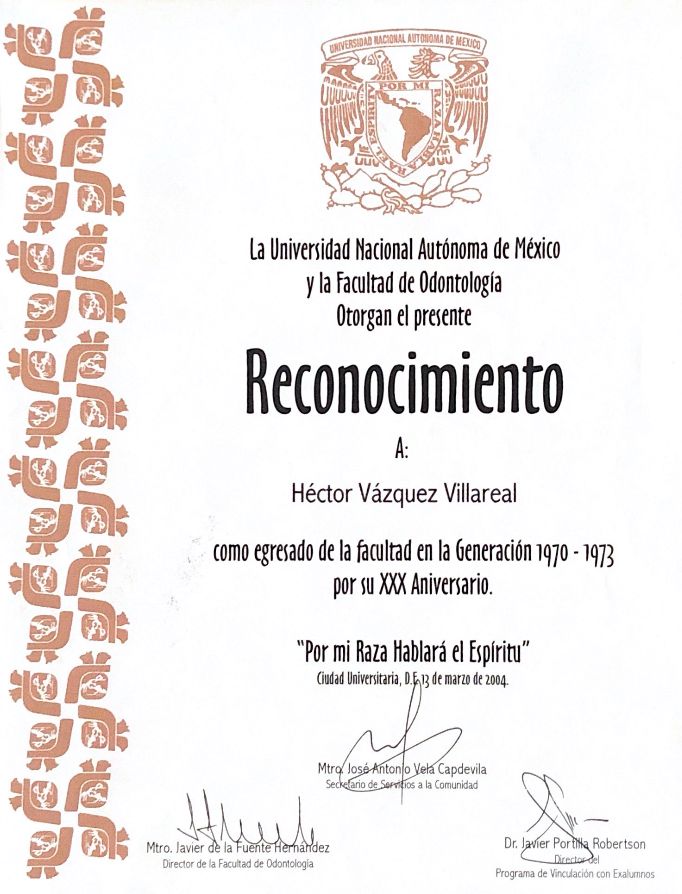 El Dr. Héctor Joaquín Vázquez Villarreal es el fundador y director general de V3Dental. Egresó de la facultad de odontología de la Universidad Autónoma de México y cuenta con más de cuarenta años de experiencia en la práctica dental. Inició su clínica dental en su casa, la cual evolucionó hasta convertirse en V3Dental. Recientemente, ha enfocado la atención de su clínica en el mercado de radiografías dentales, ofreciendo este servicio a otros profesionales de la zona conurbada.