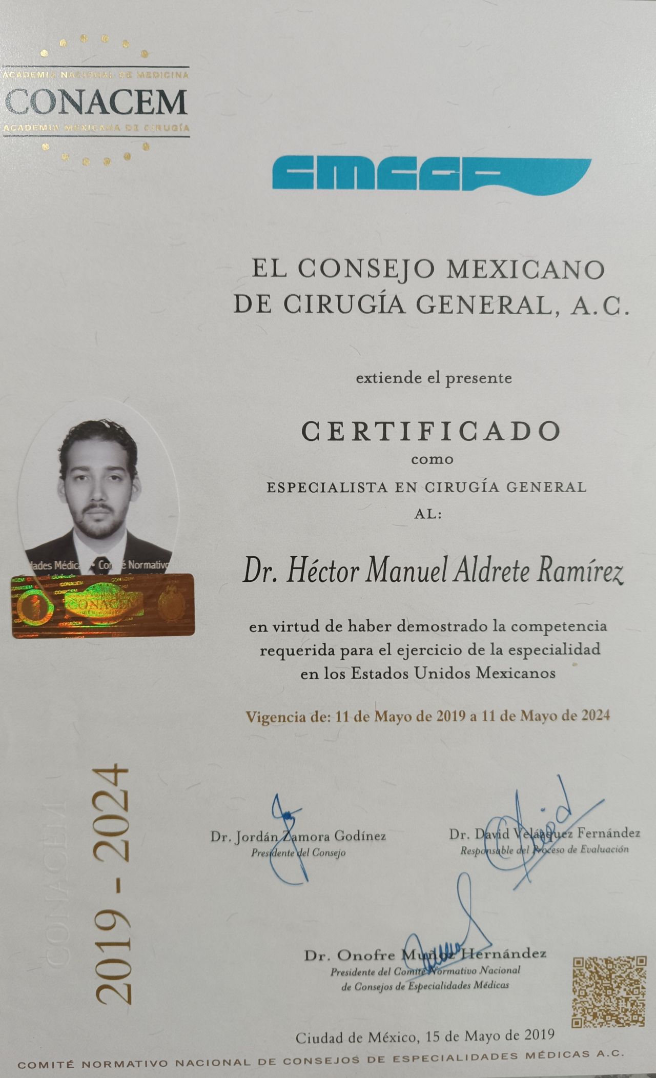 Soy un Cirujano CERTIFICADO por el Consejo Mexicano de Cirugía General A. C.