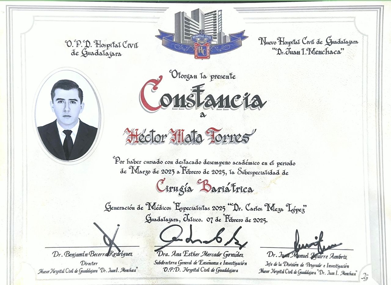 Soy cirujano general con subespecialidad en cirugía bariátrica, egresado de la Universidad de Guadalajara y de los Hospitales civiles de Guadalajara.