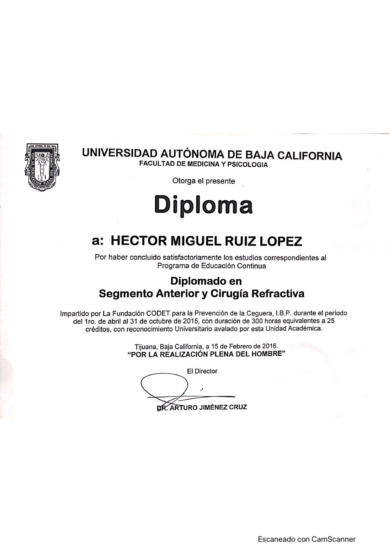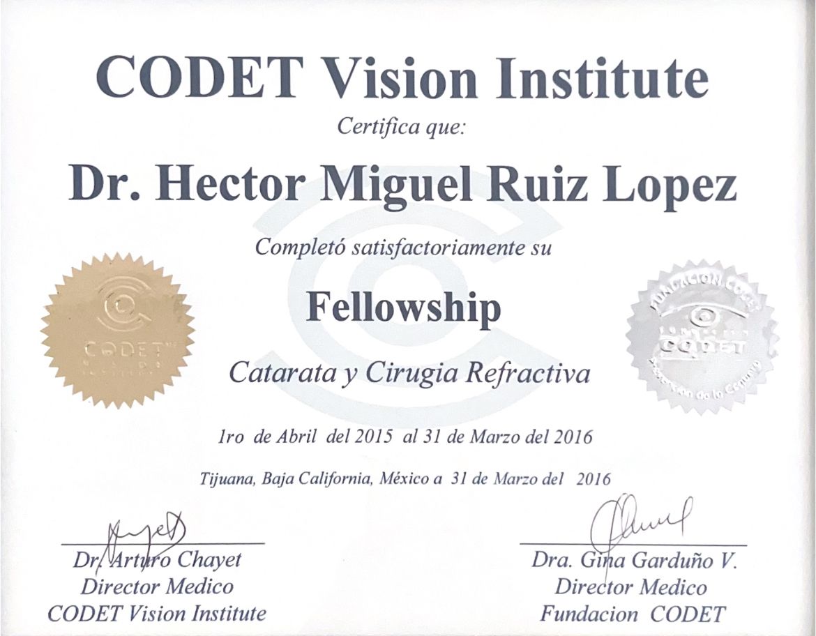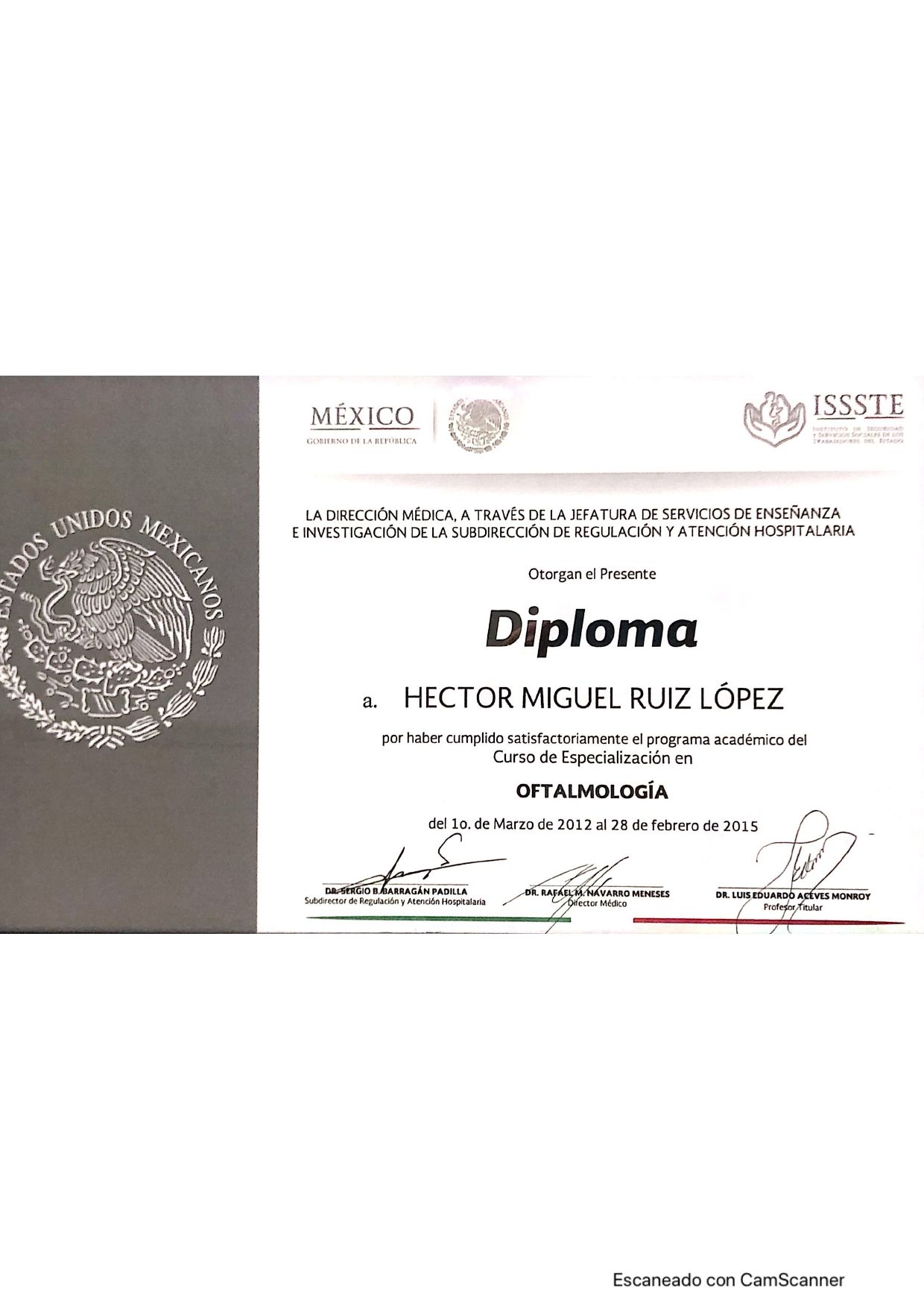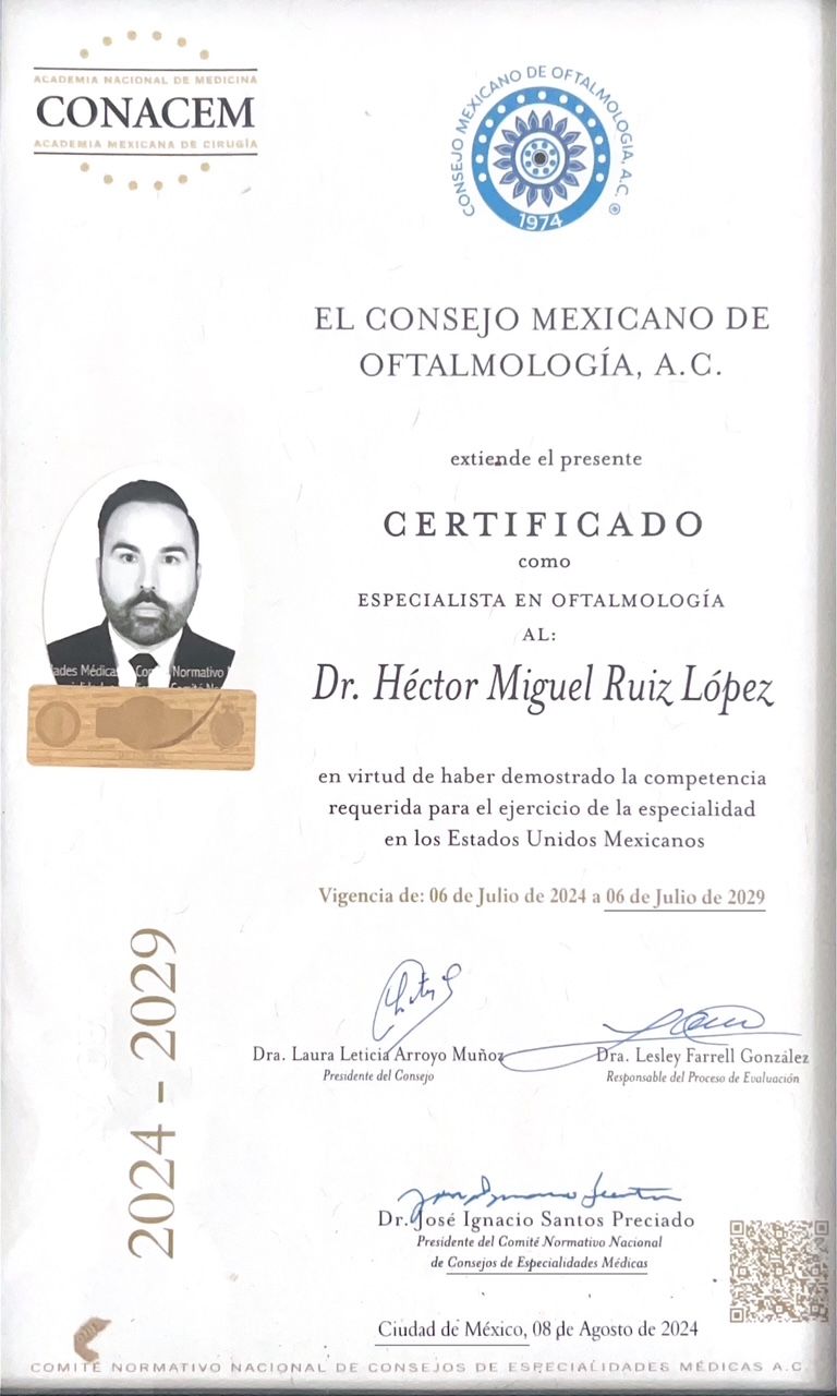 Especialista certificado, con alta especialidad en catarata, cirugía láser y córnea.