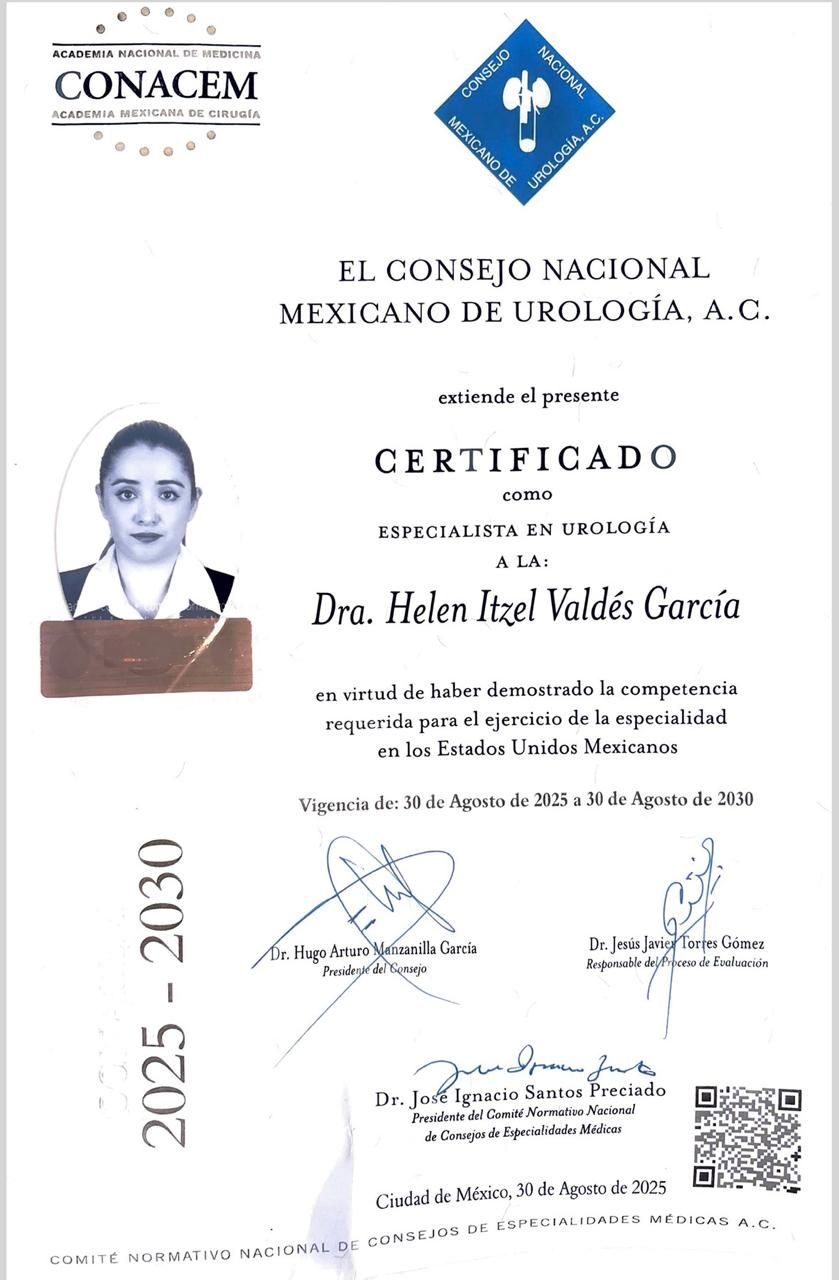 - Certificada por el Consejo Nacional Mexicano de Urología (CONAMEU).