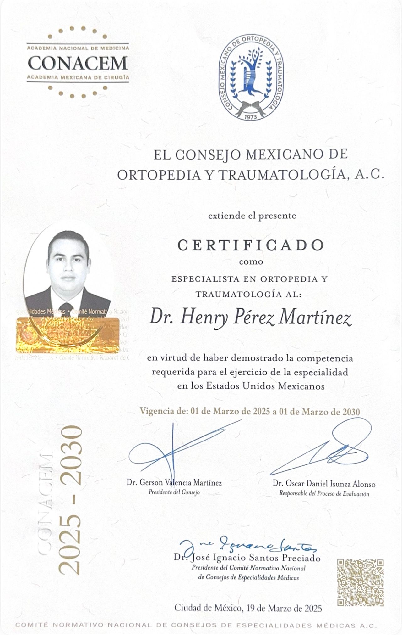 Estoy certificado por el Consejo Mexicano de Ortopedia y Traumatología, registro 7/7629/25.