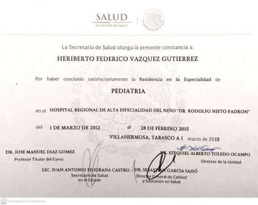 Certificado ante el consejo Mexicano de Certificación en pediatría