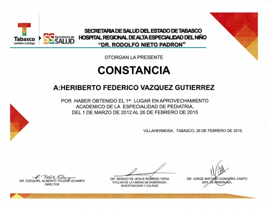 Egresado del Hospital de alta especialidad el niño "Dr. Rodolfo Nieto Padrón"