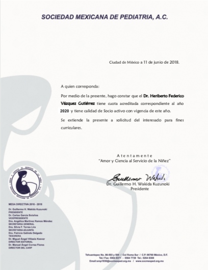 Socio de la sociedad Mexicana de Pediatría (SMP)