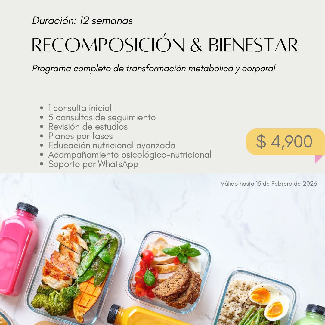 Incluye 4 consultas, ajustes progresivos y educación nutricional.