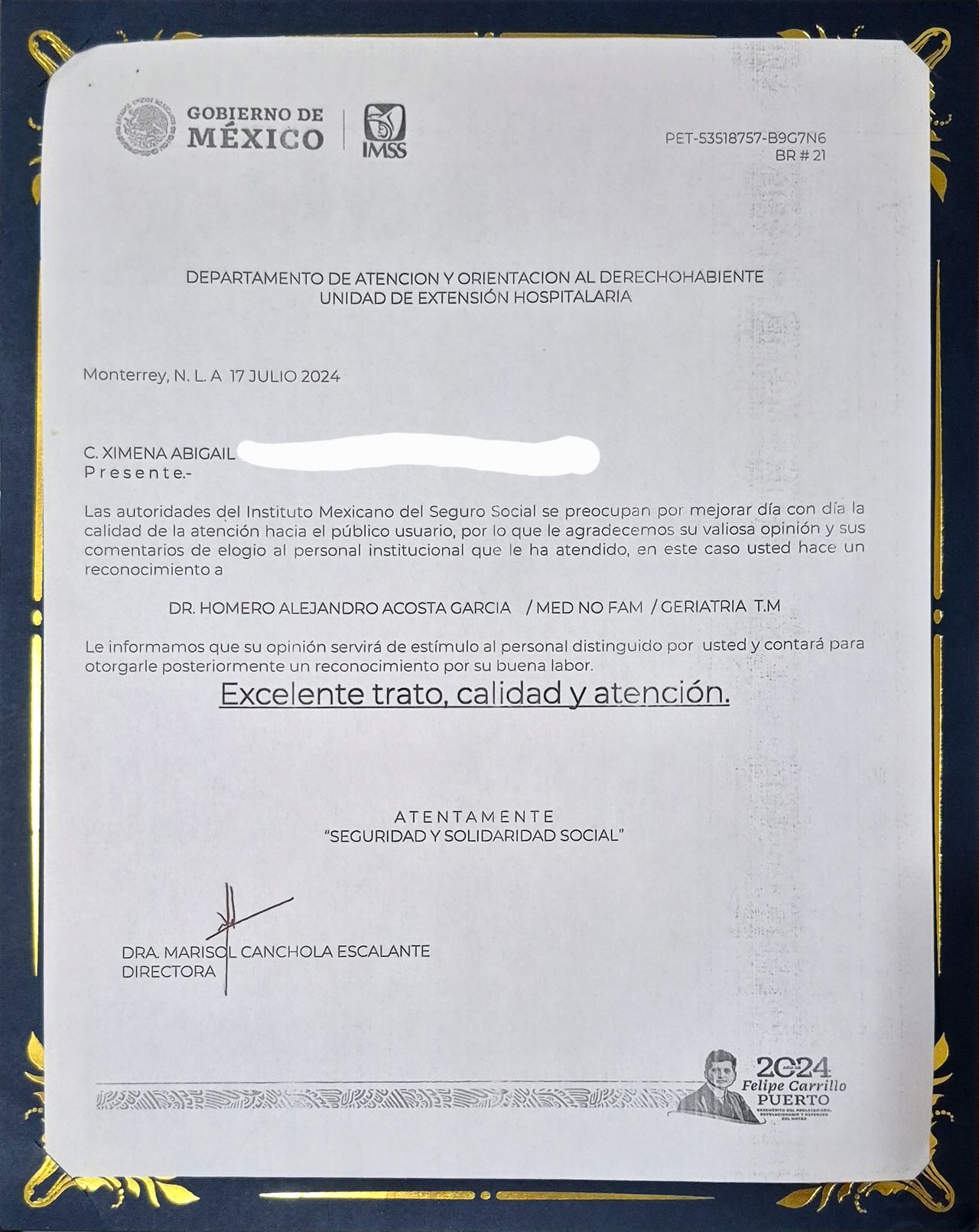 Aprecio mucho sus palabras. Mi compromiso siempre es brindar una atención completa tanto al paciente como a la familia.