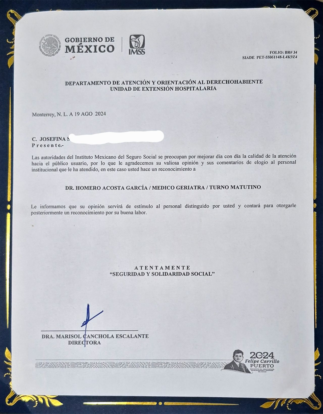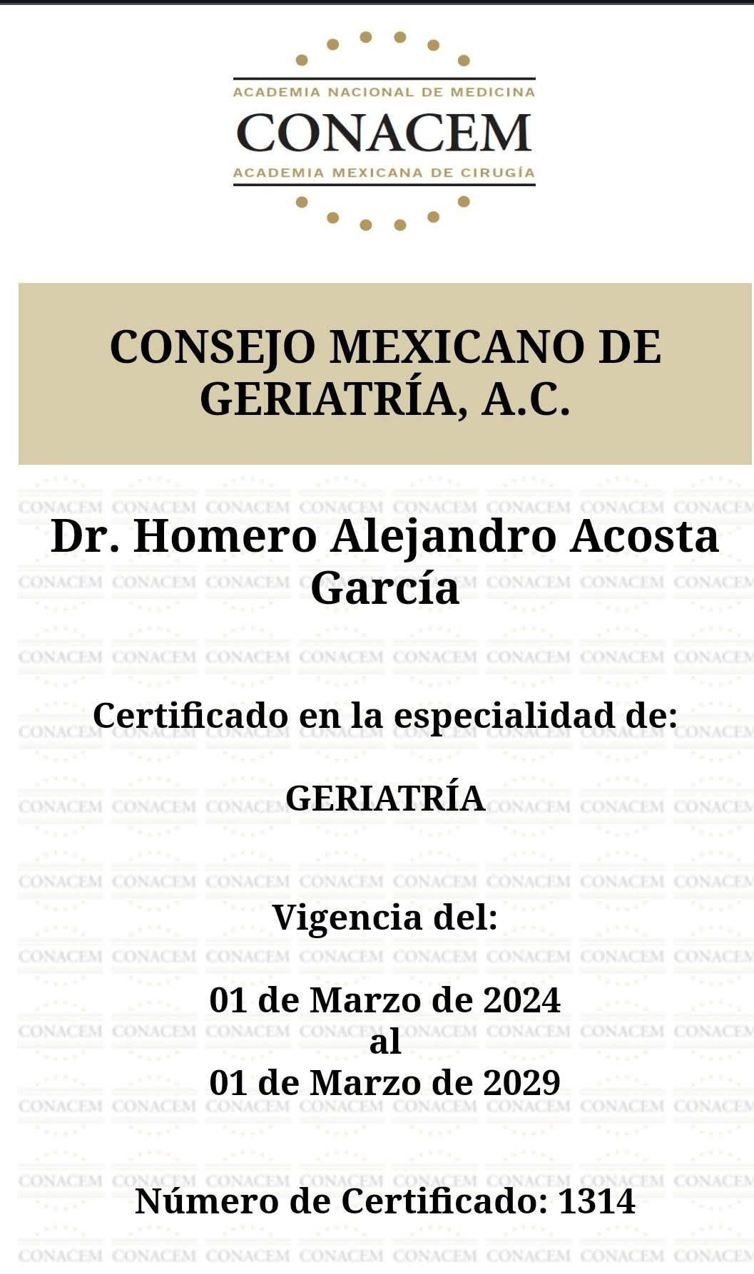 Excelente atención del Dr Homero Acosta. Valoro a mi papá de una manera muy profesional y detallada.