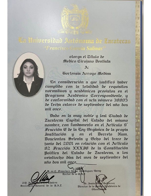 Médico Cirujano Dentista, por la Universidad Autónoma de Zacatecas (UAZ), con más de una década de experiencia, he tenido la oportunidad de ayudar a numerosas personas a alcanzar una sonrisa saludable y funcional.