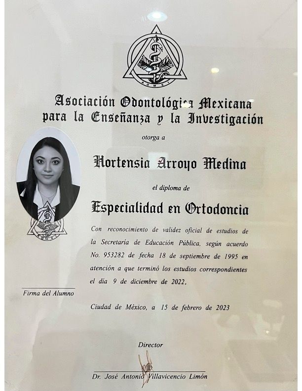 Además, soy Especialista en Ortodoncia, por (AOMEI); Ciudad de México , área en la que me enfoco en corregir problemas de alineación y mordida, ofreciendo tratamientos personalizados que no solo mejoran la estética dental, sino también la calidad de vida. Mi compromiso es brindar una atención profesional, cercana y de alta calidad, utilizando técnicas modernas y adaptadas a las necesidades de cada paciente.