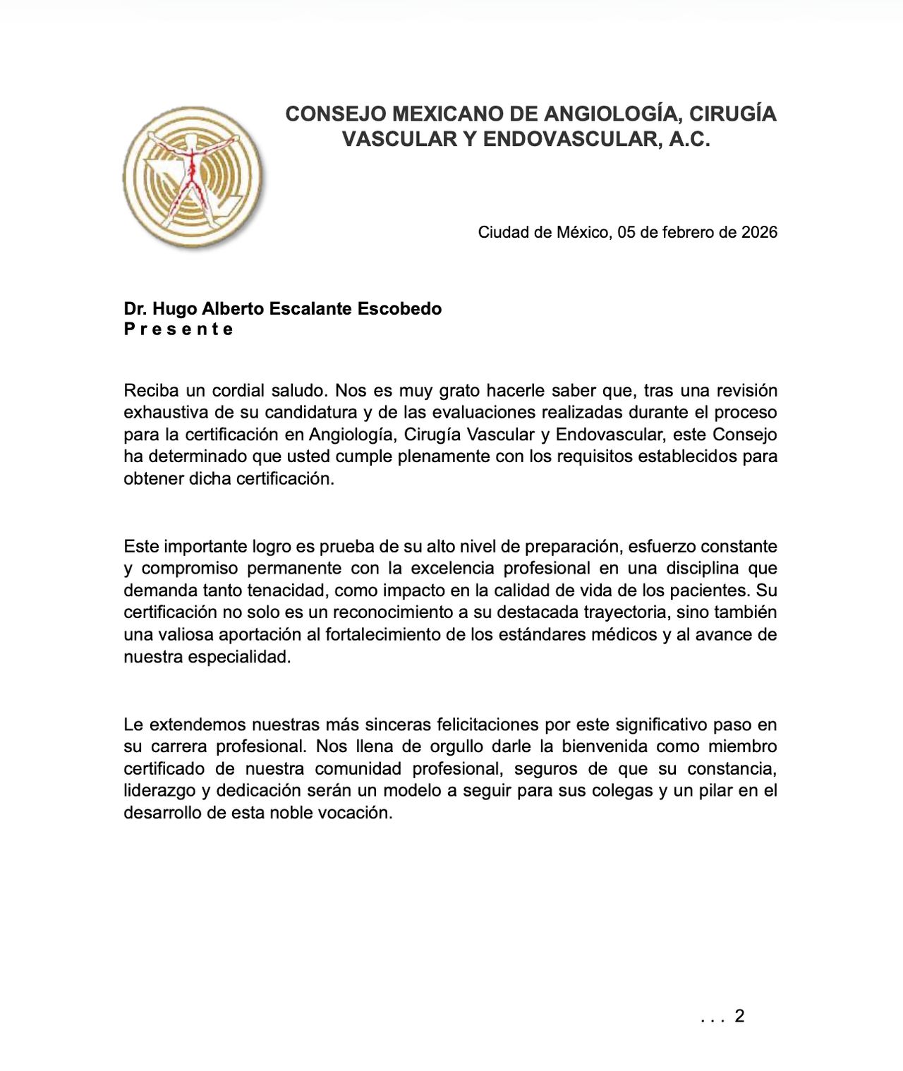 Creo firmemente en la prevención y el seguimiento, no solo en “tratar el síntoma”. Por eso, además del tratamiento médico y quirúrgico, me enfoco en estrategias que mejoren la calidad de vida: control de factores de riesgo, cambios de hábitos, y vigilancia clínica e imagenológica cuando es necesario. Cuando se requiere intervención, cuento con experiencia tanto en procedimientos abiertos como endovasculares (mínimamente invasivos), buscando la opción más adecuada para cada caso, con el mejor balance entre efectividad y seguridad.