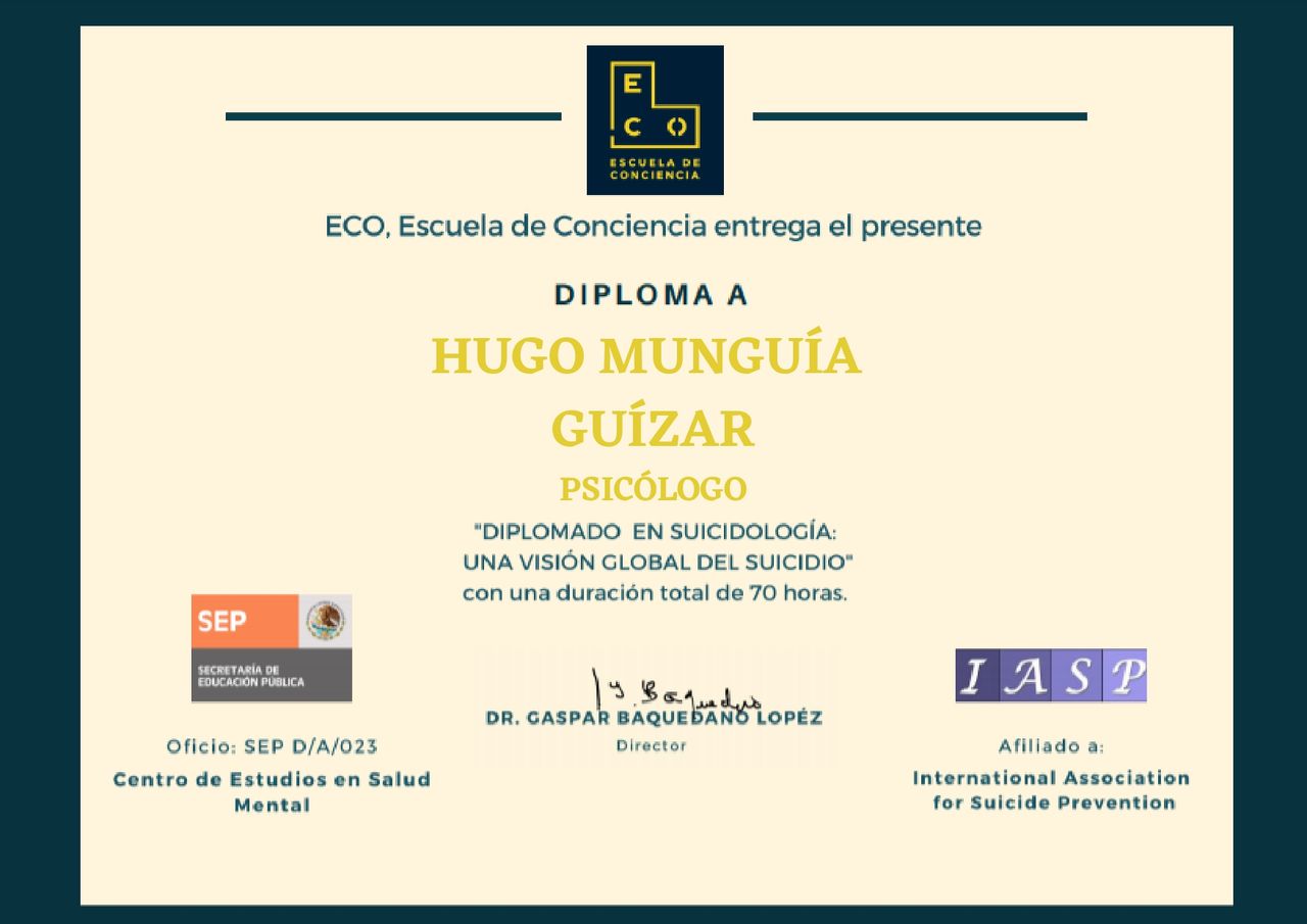Hugo un profesional maravilloso: atento, respetuoso y genuinamente comprometido con el bienestar de quienes acompaña. Siento una gratitud inmensa por todo lo que he aprendido y por el impacto positivo que su acompañamiento ha tenido en mi vida. Recomiendo a Hugo de todo corazón a cualquier persona que esté buscando un cambio real, sensible y un espacio terapéutico seguro.-