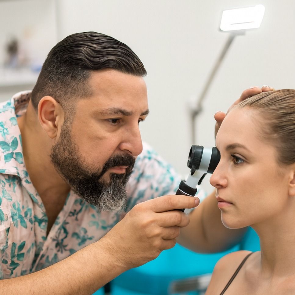 Soy dermatólogo con más de 20 años de experiencia en consulta privada. Me formé en la Universidad Autónoma de Nuevo León, con especialidad en Dermatología Clínica y Quirúrgica, y completé maestrías en Bioética y Suplementación alimenticia.