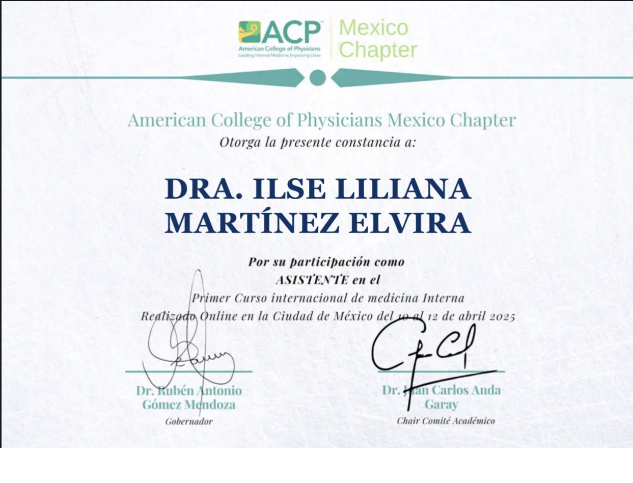 Certificada por el Colegio Mexicano de Medicina Interna.