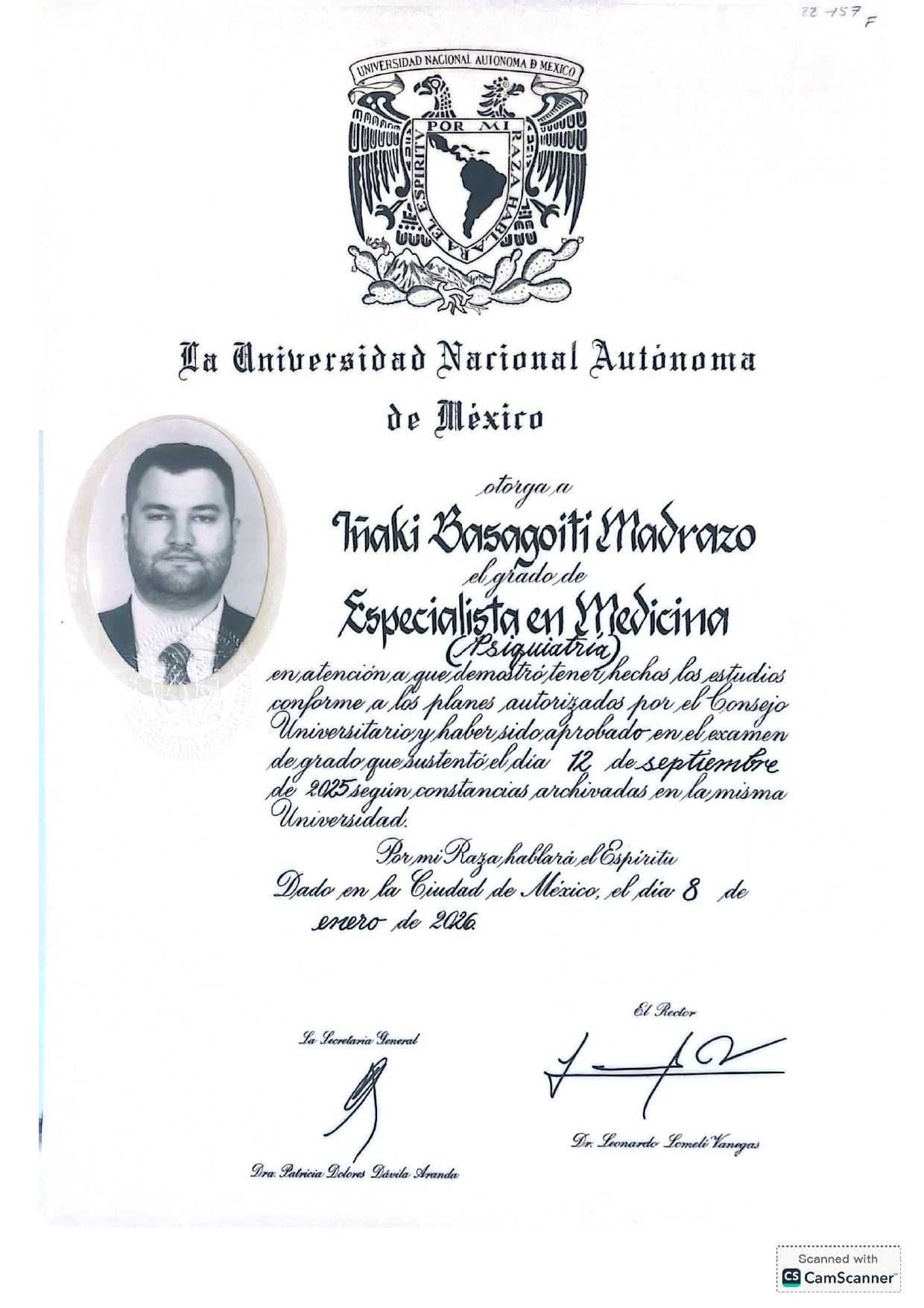 Soy médico titulado con formación clínica en el Instituto Nacional de Psiquiatría, con formación adicional en terapia cognitivo-conductual y una Maestría en Neuropsicología Clínica por la Universidad Internacional de Valencia enfocado en salud mental.