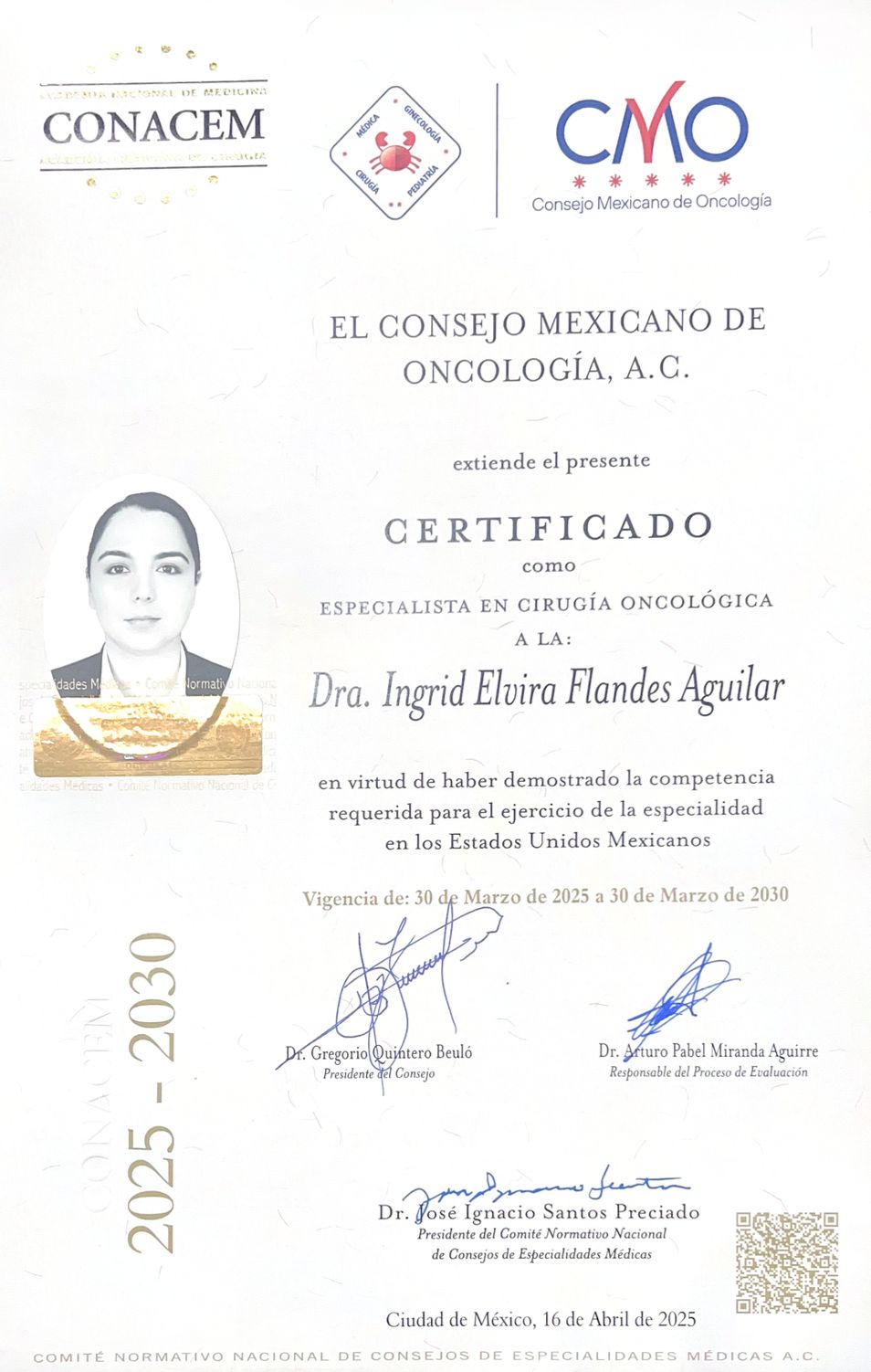 Cirujana oncóloga certificada por el Consejo Mexicano de Oncologia