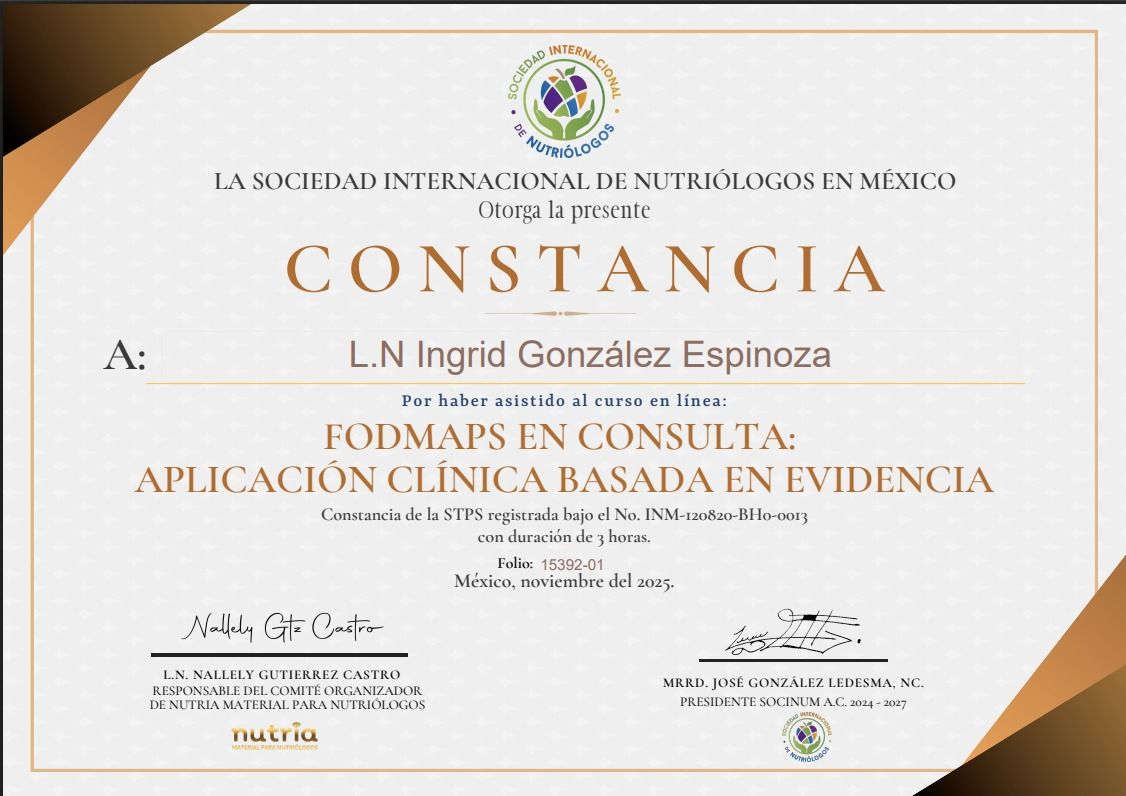 Ingrid es una persona que te escucha y siempre busca darte el mejor plan de alimentación de tal forma que no cueste trabajo seguirlo ya que toma en cuenta tus gustos. Me ha ayudado mucho y he aprendido a comer mejor sin sacrificar mis antojos y gustos