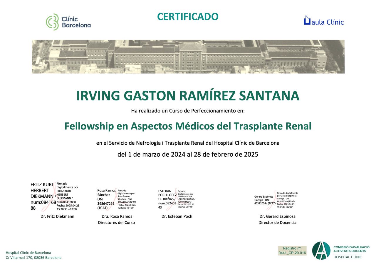 Estoy muy agradecido por la atención recibida por el Dr. Irving Ramírez Santana. Su dedicación y experiencia en nefrología son evidentes, y su enfoque integral del cuidado del paciente es realmente admirable.